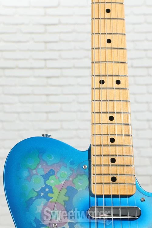 Flower Power In 1968, political strife and social upheaval were reaching a frenzied peak in the United States and abroad, but for the youth of the world, music was a unifying force that held it all together. The Fender Custom Shop ’68 Paisley Telecaster NOS celebrates Fender’s iconic solidbody electric guitar in all its psychedelic glory. Decked out in full paisley regalia, this colorful edition of the ’68 Tele represented the establishment’s embrace of Flower Power — or a cynical play to exploit it. (Fender was, after all, owned by CBS at that point.) Introduced the year before in the “summer of love,” the original vintage instruments have become quite sought-after. Meticulously handcrafted in the USA by Fender’s elite Custom Shop luthiers, the ’68 Paisley Telecaster NOS brings you a masterful re-creation of this blast from the past, complete with stunning visuals, off-the-charts playability, and eat-it-with-a-spoon tone.Vintage vibe with optimized Sweetwater is an Authorized Fender Custom Shop Dealer Genuine New Item Sweetwater's 2-year warranty and 55 point inspection Fender Custom Shop Vintage Custom '68 Paisley Telecaster NOS - Blue Paisley Solidbody Electric Guitar with Alder Body, Maple Neck, Maple Fingerboard, and 2 Single-coil Pickups - Blue Paisley Flower Power In 1968, political strife and social upheaval were reaching a frenzied peak in the United States and abroad, but for the youth of the world, music was a unifying force that held it all together. The Fender Custom Shop ’68 Paisley Telecaster NOS celebrates Fender’s iconic solidbody electric guitar in all its psychedelic glory. Decked out in full paisley regalia, this colorful edition of the ’68 Tele represented the establishment’s embrace of Flower Power — or a cynical play to exploit it. (Fender was, after all, owned by CBS at that point.) Introduced the year before in the “summer of love,” the original vintage instruments have become quite sought-after. Meticulously handcrafted in the USA by Fender’s elite Custom Shop luthiers, the ’68 Paisley Telecaster NOS brings you a masterful re-creation of this blast from the past, complete with stunning visuals, off-the-charts playability, and eat-it-with-a-spoon tone. Vintage vibe with optimized tone and playability The Fender Custom Shop ’68 Paisley Telecaster NOS captures all the vintage vibe of the real deal, in a gorgeous instrument with modern playability and optimized tone. It features a rift-sawn maple neck with a fast, satisfying ’60s Oval C neck carve and a high-performance 7.25–9.5-inch vintage-modern compound-radius maple fingerboard. In the electronics department, a dynamic duo of hand-wound Custom Shop ’67 Tele single-coil pickups and modern wiring crank out legendary Tele bite and twang by the truckload. Premium tonewoods, top-drawer components, and painstaking attention to detail give you a guitar that may look a half-century old, but plays like a dream — and sounds amazing. Rift-sawn maple neck for stability So, what’s the big deal with rift-sawn necks? In a word: stability. Cut radially from quarter-sawn logs cut at a diagonal to the initial quartering cuts, rift-sawn necks are ultra-stable, with thinner grain that is less susceptible to warping and twisting than flat-sawn — or even quarter-sawn — necks. The result is a neck that is more impervious to changes in temperature and humidity. If you gig far and wide, you’ll appreciate this the next time you play Phoenix after a week in Miami. The stability and rigidity of rift-sawn necks also translate to better tone and increased sustain. The NOS treatment NOS stands for “New Old Stock.” In the pro audio industry, the term is commonly applied to electrical components like unused tubes or resistors of a certain vintage that are no longer in production. For a musical instrument such as a guitar, NOS generally refers to a new one built to original specs with modern reproduction parts and vintage cosmetics. The Fender Custom Shop pioneered and perfected the “Relic” aging and finishing process, and these instruments are amazing, indeed. But perhaps even more intriguing is the NOS treatment. Whereas a relic’d guitar looks how a well-worn vintage instrument would today, the NOS guitar transports you back in time to another era, conveying the excitement of bringing home a new instrument and opening the case for the first time. The Dream Factory Since its founding in 1987, the Fender Custom Shop has been home to some of the finest luthiers in the world. Whether you’re investing in a unique limited edition like this ’68 Paisley Telecaster NOS or having them build-to-order the Fender of your dreams, the Custom Shop earns its nickname — The Dream Factory — with every masterpiece they create. Custom Shop instruments are made from only the highest-grade, hand-selected materials, including impeccable tonewoods, high-end electronics, and premium hardware. And to protect your investment for many decades of playing enjoyment, your Fender Custom Shop instrument comes in a deluxe hardshell case, complete with a certificate of authenticity. Fender Custom Shop Vintage Custom ’68 Paisley Telecaster NOS Features: 2-piece select alder body delivers potent sustain with a snappy, bright response Rift-sawn maple neck with a comfortable ’60s Oval C profile Maple fingerboard with a 7.25–9.5-in. compound radius Custom Shop hand-wound ’67 Tele single-coil neck and bridge pickups Modern wiring with 3-way pickup selector switch 3-saddle Tele bridge with steel saddles Bone nut, nickel hardware, and premium tuners deliver strong resonance and tuning stability Premium nitrocellulose Relic finish offers the feel of a well-loved and played guitar at a fraction of vintage pricing Handcrafted in Fender’s USA Custom Shop Includes Custom Shop hardshell case and certificate of authenticity Specification Detail Model Vintage Custom '68 Paisley Telecaster NOS Number of Strings 6 L