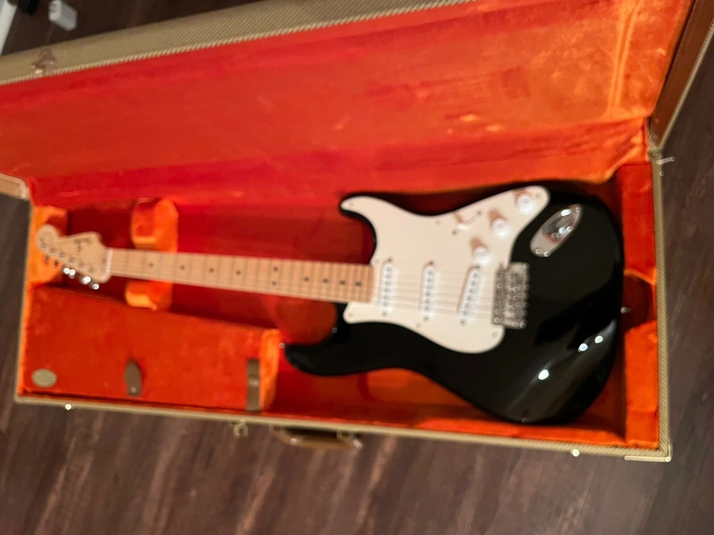 Fender Eric Clapton Strat; purchased new in 2012 and played lightly (just at home) for a couple years; case kept; excellent condition, no “bumps”, couple very faint scratches near cable plug-in (tried to show in photos, but so small you can’t see them). I started focusing on acoustics about 10 years ago, and just never went back to electric. Other than maybe playing for an hour or so every few months, this guitar has stayed in the case. As we’re starting to downsize our housing situation, just need to part with items that’s not being used. Noiseless single-coil pickups, and the current strings are 9’s; If you want to review all the specs in detail, go to the fender site…I’ve made no mods to this great-sounding guitar. Get this awesome instrument from here in the USA….instead of Japan.