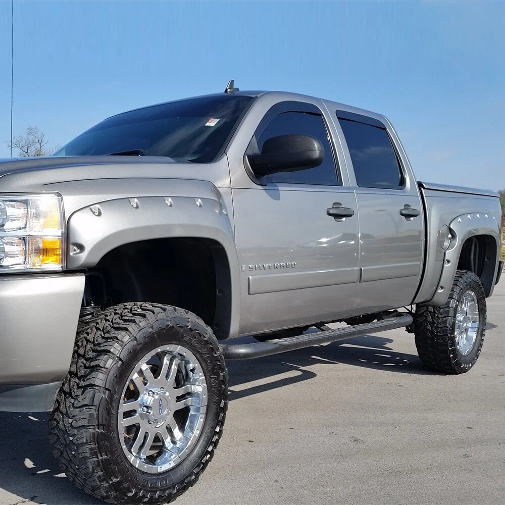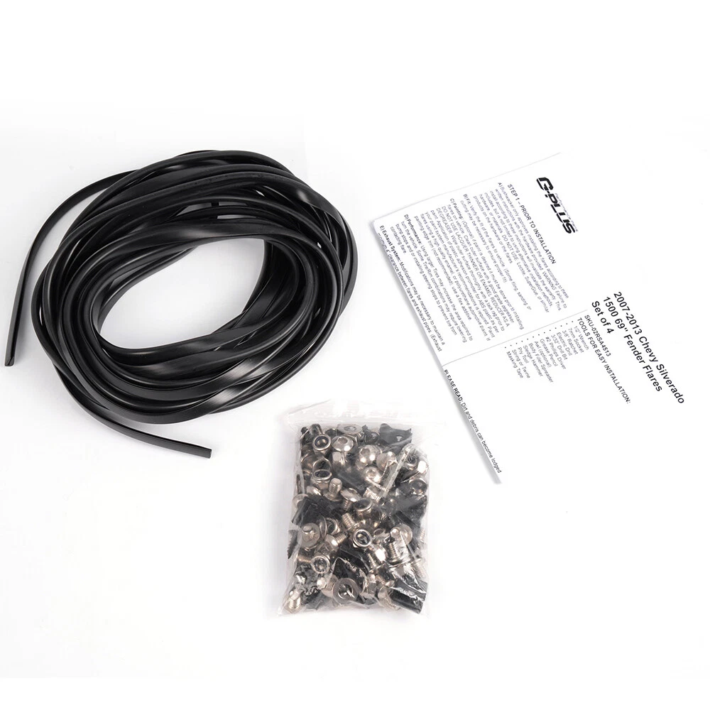 AUTOMOTO PRODUCT Fender Flares Fit For 07-13 Chevy Silverado 1500 Pocket Rivet Bolt On Style 69" Product Introduction Product Introduction Title: Fender Flares Application: For 2007-2013 Chevy Silverado 1500 LT / LTZ / WT / LS / Hybrid / XFE With 69.3" Bed Fleetside Models. (2007 Silverado Fit New Body Style Only) Color: Black Description: 100% brand new in original packaging. Product will be received exactly the same as shown in the picture! Made of high quality polypropylene with paintable smooth finish Full protection from mud scratches, sand and other outer damages for your wheels. Helps to reduce spray and protects paint with fender flares. Comes with bolts, nuts and all necessary mounting hardware for installation. Easy to install, no further modification to the body needed. Package Includes: A set (4pcs) of pocket style Fender Flares Necessary mounting hardware, as shown in the picture Note: All of the items in our shop will come to you with the tracking number. Visit shop home WELCOME to our ebay shop CONTACT US We Open 7 Days A Week ABOUT US ABOUT US: Welcome to GPLUS's eBay Store. We specialize in aftermarket automotive car parts and is the #1 industry distributor for affordable and quality products. Welcome to GPLUS's eBay Store. We specialize in aftermarket automotive car parts and is the #1 industry distributor for affordable and quality products. Welcome to GPLUS's eBay Store. We specialize in aftermarket automotive car parts and is the #1 industry distributor for affordable and quality products. SHIPPING Shipping Information All items will ship within 24 hours (Monday - Friday). Payment cleared/received on Friday will be shipped on the next business days (Monday or Tuesday). We are not responsible for carrier transit time. This information is provided by the carrier and excludes weekends and holidays. Note that transit times may vary, particularly during peak periods or in climate weather conditions, and that delivery times frames will need to be extended for any processing time frames in excess of 1-2 business days. excess of 1-2 business days. International Shipping: International buyers are responsible for possible customs fees, brokerage fees or duty fees. We would appreciate for understanding of tracking number would not be updated in between the city of departing in the U.S. and the city of destination. ATTENTION Cargo transportation Double check shipping address. We are not responsible for incorrect or undeliverable addresses. Please use Shipping & Payments tab on top of page for shipping details for your location. Transaction will be held until a full shipping amount received. Shipping address Some of the packages cannot be delivered to a PO Box. Customer is responsible to ensure PO Box address given is deliverable by the shipping company. Package will be held until a valid physical address is provided. Customer assumes shipping charges incurred in shipping to undeliverable address. Customs duties International buyers are responsible for all customs duties, taxes, and other applicable fees incurred by the country's customs/border regulations. Please contact customs for more information. We are not responsible for any changes to address after item has been shipped. RETURN please notify us within 30 days after you've received your purchased item. Return Policy: Buyers pay for return shipping fee. Items to be returned must be in resalable condition.14 Days money back, please notify us within 14 days after you've received your purchased item. If your order has been received and it is not what you ordered, or if your item has a manufacturer defect, please contact us within 14 days from delivery date. And you must contact us to request an Return Merchandise Authorization Number (RMA). No return package will be accepted without a valid RMA number. All products are covered by our warranty against defects. EMAIL click here for questions All return requests must be submitted through your eBay account. Iterms and Condition For emissions related items, please check with your local jurisdiction for emission specific requirements before purchasing. All items do not come with installation instruction unless otherwise specified. If item is questionable, please consult your local professional/mechanic before making purchase.