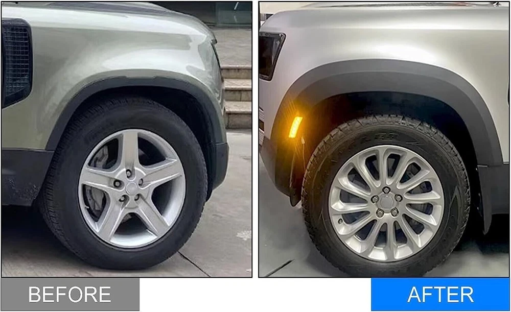 1.Product Description 【FITMENT】The fender flares with light is fit for land rover defender 110 2020-2023. Each fender flare is designed for the specific model, please check your vehicle's year, make and model. 【PREMIUM MATERIAL】Manufactured by using Injection molding technique to greatly enhance performance on collision avoidance. Material made from anti-aging polypropylene increases durability and flexibility. Ensure that the fenders are brighter and more durable. 【EASY INSTALLATION】The fender flare with light easy to install, no drilling required. Mud flaps removal are required prior to installation. 【HEAVY DUTY】Special injection molding process ensures enhanced durability, flexibility and strength for these flares to effectively withstand against cracking, warping and chalking offering a superior off-road driving experience. 【PACKAGE CONTAINS】6pcs/set fender flares, mounting instruction and hardware kit included. 2.Shipping Comments 【 1 】 Wheel Fender Trim Kit Widening Fender Fits for Defender 110 4D 2020 2021 2022 【 2 】 We will send the items within 5 Days once system confirms buyer's payment. 【 3 】 FedEx, DHL,TNT Or UPS,5-7 working days for formal order, but the specific delivery time depends on destination and so on. 3.Function Made of ABS Plastic, Will Not Be Easily Deformed, Has Good Corrosion Resistance, Protects the Car From Cratches. 4.Return Policy We can guarantee the high quality, and agree 1: 1 replace for the defective goods. 5.Pay Attention Due to the difference between monitors, the picture may not reflect the actual color of the item, but we guarantee that the item is exactly as the picture shown. If any problems with us, please feel free to contact us first, we will do our best to solve problems and provide the best services. We would be appreciate if you can contact us before feedback.