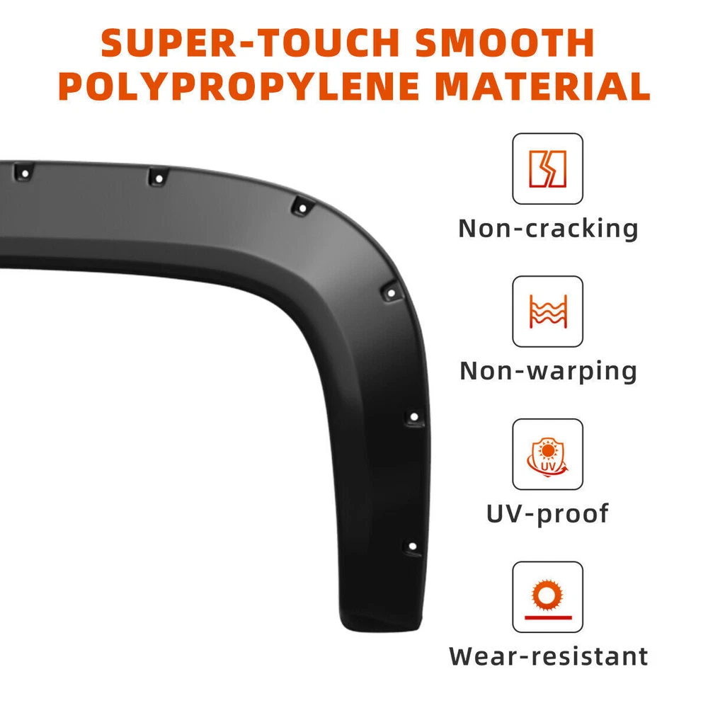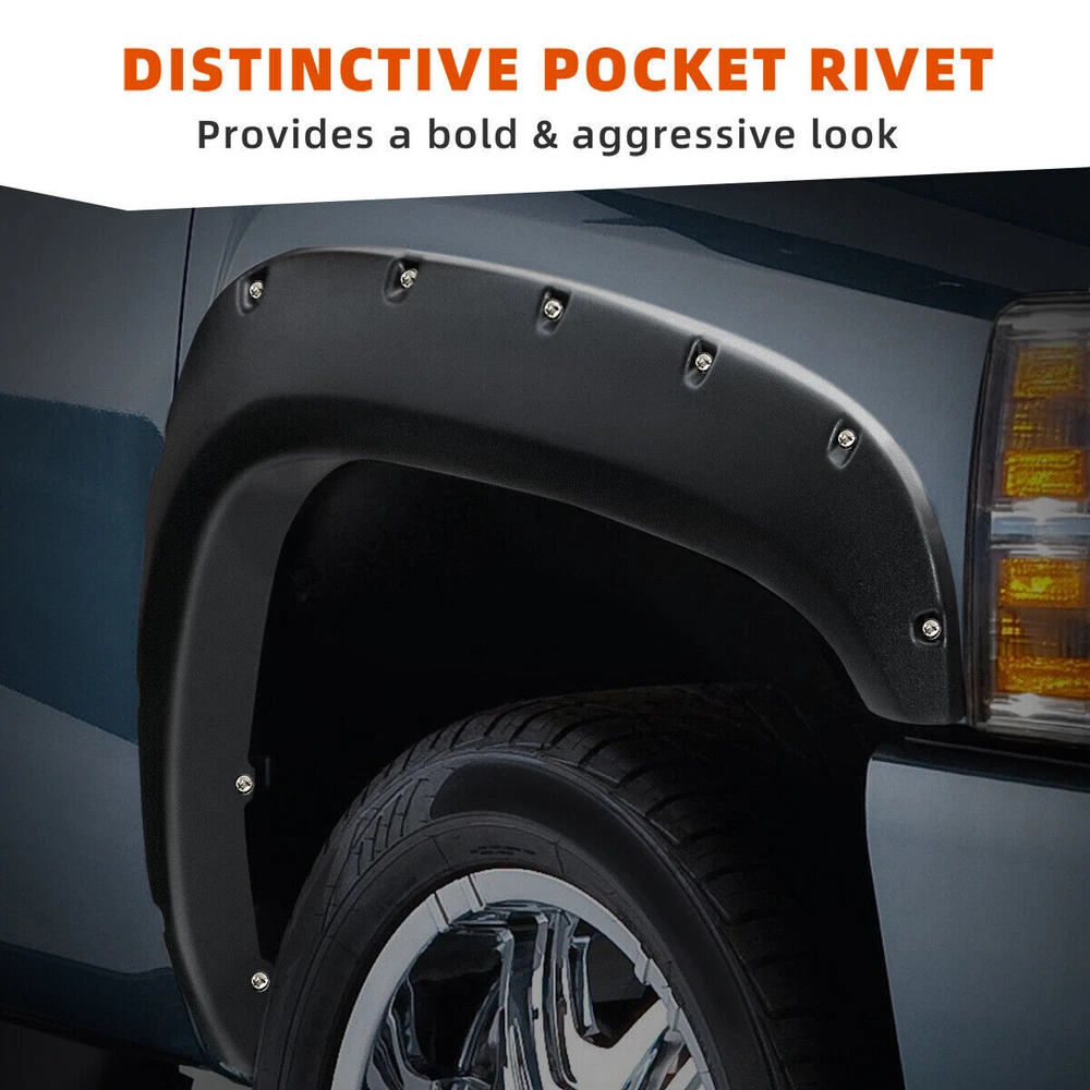 Lamp Assembly Control Arms Floor Mats Catalytic Converters Cooling Systems Coils & Modules Mirrors Wheel Lugs Exhaust Shocks & Struts Other PRODUCT DESCRIPTION Compatible With: for 2007- 2013 Chevy / Chevrolet Silverado 1500 (Only Fit 69.3" (5.8FT) Bed Fleetside Models) & (2007 Silverado Fit New Body Style Only) Features: PREMIUM PP MATERIAL Each set of Fender Flares is made of premium material to ensure that the fenders are brighter and more durable. EASY TO INSTALL Accurate trimming to fit the wheels perfectly. Installation manual and necessary mounting hardware kit are included in the package. UV PROTECTION Add UV powder during the production process to ensure that the fender flares are free of chalking and cracking. Matte black finish design, it could be painted according to the specific color of your vehicle. OFF ROAD LOOK Protect the wheel well from mud, scratches and other external damage. Package Included : 4pcs Fender Flares (front & rear) Mounting hardware Installation instruction SHIPPING The shipping rates listed are only for residential or commercial destinations in the continental 48 United States. All international sales will go through eBay Global Shipping Program.Please ask us if there are any questions. We only ship the item to the address that is sent to us at the time of checkout. Please verify the correct shipping address in your PayPal account before making your payment. If we ship your item to an old or invalid address and you are not able to locate the item, we are not responsible for shipping a replacement. Currently, we do not ship to Hawaii, Alaska, Puerto Rico,APO/FPO/PO Boxes. We use USPS, UPS & FedEx as shipping method. Payments cleared before 12 PM PST, will be shipped on the same day. PAYMENT We accept PayPal and all forms of credit card. We will only ship to the confirmed Paypal shipping address given with the payment. We do not offer local pick up service. RETURN 30 days Money Back Guarantee. If any package that needs to be returned, please contact our customer service first to receive a RMA form. All return items MUST be in brand new condition. ABOUT US Specialized in aftermarket auto parts since 2012, we source and work directly with professional manufacturers to provide the highest quality parts at the most economical prices. We also have over 5 years of shipping experience with FedEx and USPS.Our Packing Quality is Guaranteed,Item shipping is Timely! On Jul 5, 2023 at 00:42:22 PDT, seller added the following information: On Jun 13, 2024 at 12:24:34 PDT, seller added the following information: On Sep 19, 2024 at 05:15:27 PDT, seller added the following information: On Sep 29, 2024 at 22:41:26 PDT, seller added the following information: On Sep 29, 2024 at 23:33:39 PDT, seller added the following information: