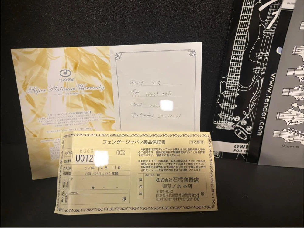 【Notice】 ※You cannot cancel an order after it has been placed and before it has been shiped. (Recently, there have been many cancellations after ordering.Please coisider carefully before purchasing.) ---------------------------------------------------------------------------------------------- 【Item Description】 This is a Fender Japan MG69 MADE IN JAPAN with uppercase lettering. The tuning pegs have been replaced with genuine Fender locking pegs, making string changes easy and providing stable tuning for playing. The truss rod has plenty of room on both sides. The frets are also in good condition. The nut is oiled bone, and the ends of the frets have been neatly crowned, making it very comfortable to play. This Mustang is one of the best-built guitars I've owned, with a particularly great neck. The fingerboard is a rare and beautiful dark rosewood. I've been taking good care of it, so I've taken it to my trusted workshop for adjustments. The owner of the workshop also said it has a good neck. Even after years of keeping the strings tight, the neck didn't warp much, and I loved it. I will loosen and put on new strings before shipping. This guitar is very special to me, but I haven't played it lately, and I feel bad for it, so I'm selling it so someone can play it a lot. I will ship it after maintenance and careful packaging. ----------------------------------------------------------------------------------------------- 【Shipping】 Fedex priory (Free shipping, of course) ※Currently, economy service is not available. ※An additional shipping fee of 150 USD is required only for Australia. ※For Australia, we may use DHL. ※EMS is not available. 【Import Duties】 Import duties, taxes and charges are not included in the item price.These charges are buyer's responsibility. Please check with customs for these addtional costs before bidding or purchasing. Even if you ask us about Import duties, we cannot give you an exact amount.