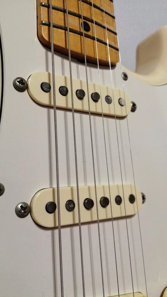 Pickup Configuration: SSS Accessories: Tremolo Arm Body Color: White Pickup: 65 Pure Vintage & Original Texas Special & DiMarzio DP404 Replaced: Neck & Bridge Pickup Neck Material: Maple Brand: Fender Fretboard Material: Maple Neck Joint: Bolt on (Detachable) Country/Region of Manufacture: Japan Year of Manufacture: 2004-2005 Style: Stratocaster MPN: Does Not Apply Body Type: Solid Type: Electric Guitar Weight: 7.65 lbs (3.47 kg) Handedness: Right-Handed Model Year: 2004 Series: Fender Stratocaster String Configuration: 6 String Model: ST68-TX