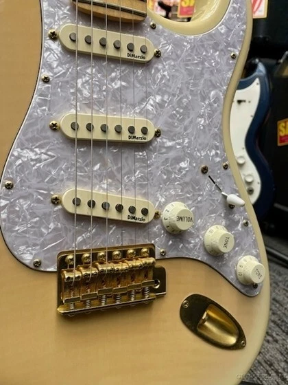 Description Made in Japan Fender guitars have been beloved by players both domestically and internationally for their exceptional craftsmanship and outstanding sound. This particular model is from the Fender Japan lineup and is part of the Signature Series—STR-RK Richie Kotzen, designed in collaboration with the legendary guitarist. Richie Kotzen, known for his work with Mr. Big, The Winery Dogs, and his solo career, has had a significant impact on the music scene, and his signature model reflects his refined taste and technical expertise. The See-Through White Sunburst finish is striking, with subtle hues that reveal the beautiful flame maple grain underneath. The abalone inlays and gold hardware give the guitar a luxurious feel. The neck features a thicker grip akin to traditional Telecasters, making it comfortable for players familiar with a more substantial neck. The fingerboard has a gentle 305R radius, and with 22 frets and super jumbo frets, it offers modern playability. The satin finish on the back of the neck makes it easy to play fast and technical phrases. The guitar is constructed with a maple top, ash back, maple neck, and maple fingerboard, delivering a combination of robust mid-lows and bright, clear highs that create a distinctive tone. For pickups, the guitar is equipped with DiMarzio Custom Made pickups, designed specifically for this model. Condition: There are some light scratches, dents, oxidation, and rust on the hardware due to age and use, as well as some minor chips and cracks in the paint. However, the frets still have plenty of life left, and the truss rod is in good working condition. This guitar is ready to be used as a primary instrument and offers excellent playability for years to come. Year: 2006-2008 Fret life: 80% (leveled and polished) Truss rod: OK Cosmetic damage: scratches, dents, paint chips and cracks, color fading, plating wear Replaced/modified parts: switch [spec] Body : Ash / Flame Maple Laminated Maple Cap Neck : Maple 1pc (Satin Mat) Fingerboard : Maple (305R, 22 Super Jumbo Frets) Pickup : DiMarzio Custom Made x3 Weight : 4.04kg Accessories: original gig bag, arm About Us If you have any problem, please contact us. Your satisfaction is important to us. We have results that I sold of tens of thousands of by Internet sale. We have pride ourselves in the Quality of items we offer. All our items has been checked by technician. As every seller dealing with pre-owned branded items in Japan we have as well license from local government to offer services of this kind. We are officially registered as legal business and we have to comply with all rules and regulations including tax requirements from the Japanese government. International Buyers - Please Note: Import duties, taxes and charges are not included in the item price or shipping charges. These charges are the buyer's responsibility. Please check with your country's customs office to determine what these additional costs will be prior to bidding/buying. These charges are normally collected by the delivering freight (shipping) company or when you pick the item up - do not confuse them for additional shipping charges. We do not mark merchandise values below value or mark items as “gifts” - US and International government regulations prohibit such behavior.