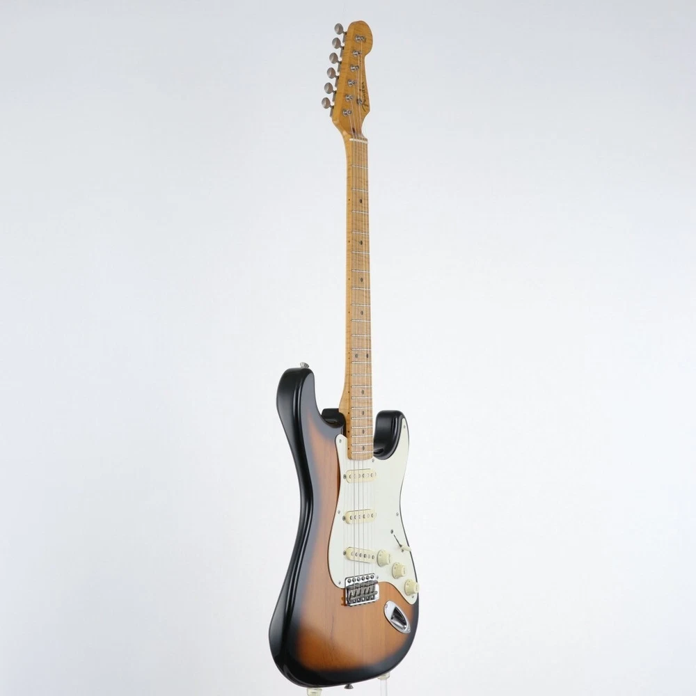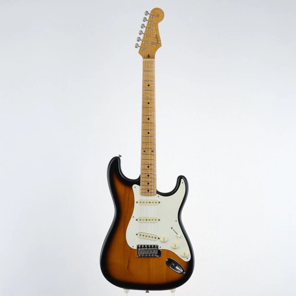 Description This anniversary model was released in limited quantities to commemorate the 40th anniversary of the Stratocaster! This anniversary model was released in limited quantities in 1994, 40 years after the Stratocaster was released. The lightweight ash body and maple neck have a beautiful wood grain with a FOTO FLAME finish. It is equipped with three ST-VINTAGE pickups. This model has a special look while faithfully reproducing the classic Stratocaster sound. There is deformation in the pickguard. There are scratches, dents, and signs of use such as dullness and rust on the parts. There are no abnormalities in the neck and it is in good playing condition. Product rank: B: Significant scratches and signs of use, but no problem for normal use Serial number: S010145 Year of manufacture: 1994 Country of manufacture: Japan Case: Non-genuine soft case Accessories: Arm Weight: 3.36kg Truss rod: [Note] Rod has been checked up to 60° left and right and no problem (few left) Frets remaining: [Note] Still able to withstand cutting, but frets are low String height: bass string side: 2.0mm above 12th fret String height: 1.5mm above 12th fret Nut width: 42.7mm Neck thickness near 1st fret: 22.0mm Neck thickness near 12th fret: 25.0mm Scale: 648mm (25.5") RADIUS: 184mm (7.25") Strings at setup: D'Addario EXL110 / .010-.046 set Repairs and maintenance: cleaning, string replacement, rod adjustment, octave adjustment, string height adjustment, fret filing Shipping Shipping by Fedex or EMS (international express mail service, with Tracking and Insurance, handling cost). Fedex takes 1 week, EMS takes 1-2 weeks. We will ship your item within 5 business days with carefully packed. Returns Money back guarantee within 30 days. We offer 30 days money back guarantee for defective products. The buyer must pay for returning it back to us. When there were defects in a item, please contact us. About Us If you have any problem, please contact us. Your satisfaction is important to us. We have results that I sold of tens of thousands of by Internet sale. We have pride ourselves in the Quality of items we offer. All our items has been checked by technician. As every seller dealing with pre-owned branded items in Japan we have as well license from local government to offer services of this kind. We are officially registered as legal business and we have to comply with all rules and regulations including tax requirements from the Japanese government. International Buyers - Please Note: Import duties, taxes and charges are not included in the item price or shipping charges. These charges are the buyer's responsibility. Please check with your country's customs office to determine what these additional costs will be prior to bidding/buying. These charges are normally collected by the delivering freight (shipping) company or when you pick the item up - do not confuse them for additional shipping charges. We do not mark merchandise values below value or mark items as “gifts” - US and International government regulations prohibit such behavior.
