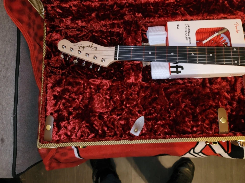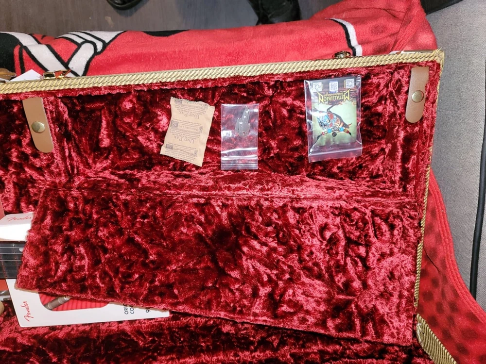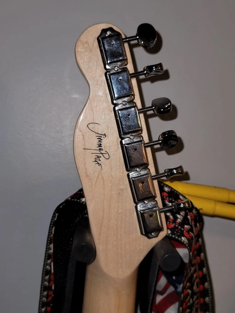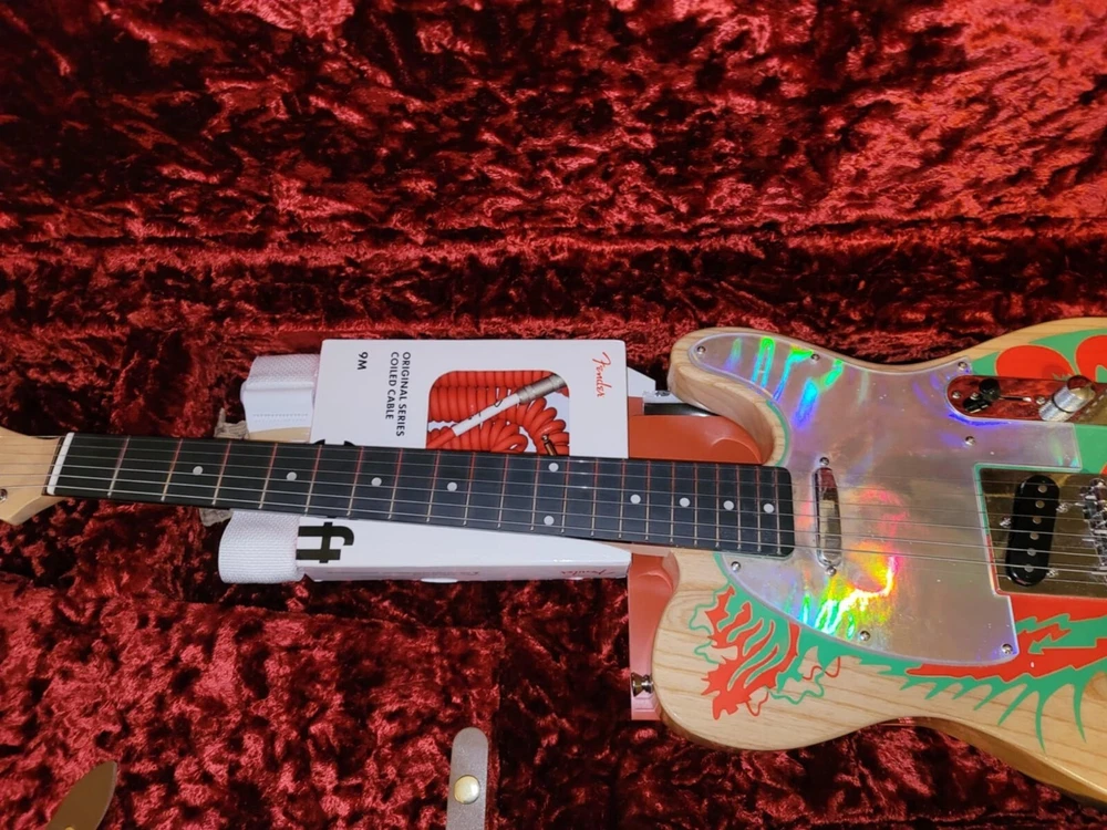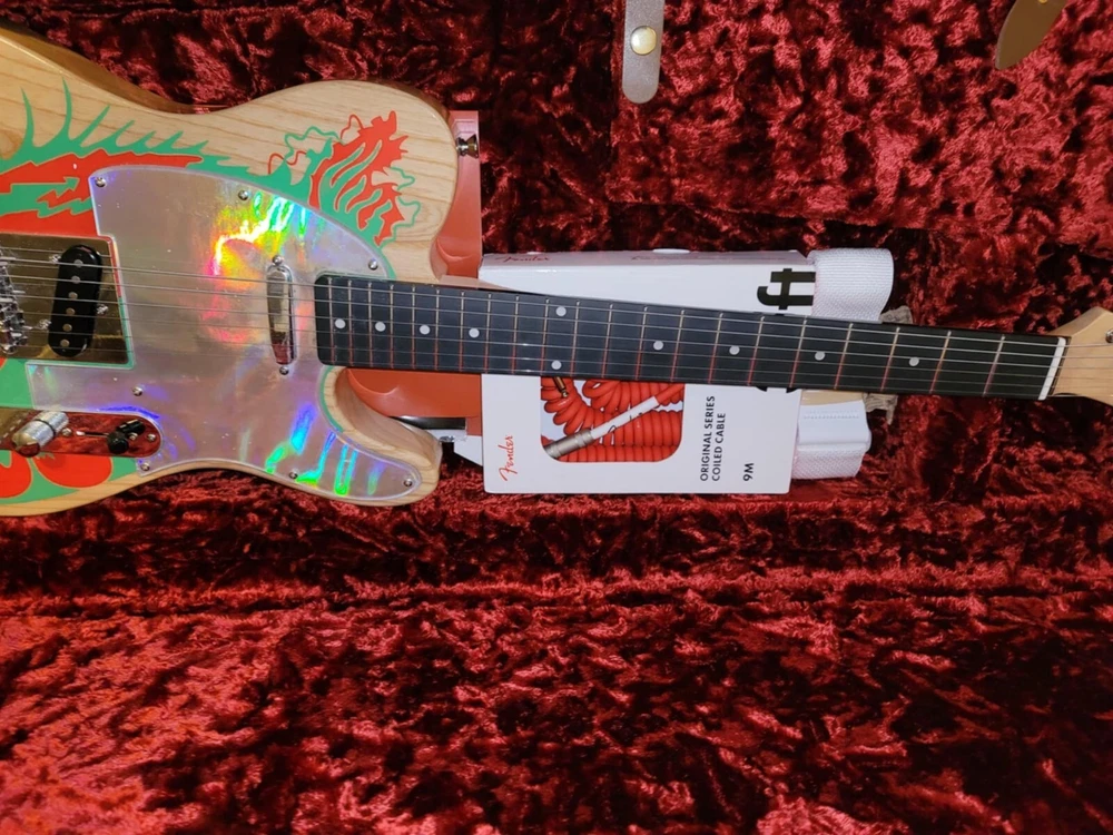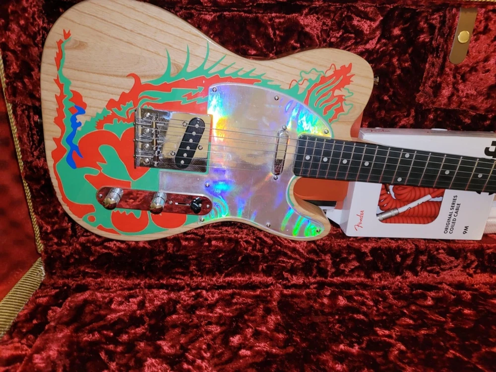 On January 31, 1969, Led Zeppelin played New York's Fillmore East for the first time. Their debut album had just been released, and the Big Apple was abuzz with the promise of this hot new British group. But they were as yet untested before an American audience, so Fillmore impresario Bill Graham booked them as the opening act for Iron Butterfly. Their first set that evening killed, tearing up the house so thoroughly that Iron Butterfly refused to go on after them again. So Led Zeppelin headlined the 11:30 show — never again to be an opening act. Jimmy Page played his Tele that night — the one he famously used on the first album, and quite frequently thereafter — sending shock waves into the audience with every strike of his pick and violin bow. Now Sweetwater is thrilled to present to you the Fender Jimmy Page Telecaster, a superb re-creation of this legendary instrument in all its glory. Custom Oval "C" neck with a vintage fingerboard radius If you're a guitarist who prefers a thin '60s neck profile with a little more meat, the Jimmy Page Tele's Custom Oval "C" shape is your cup of tea. In 1959, Fender started doing rosewood fingerboards on Telecasters, and that's what this one has, along with a comfortable vintage-spec 7.25-inch radius. Fingerboard designs have flattened out over the decades, the theory being that flatter radii are better for soloing in the high register. The fact remains that Mr. Page was a prodigious soloist on his Tele (after all, he played the epic "Stairway to Heaven" solo on it). And that's all we have to say about that. As an added touch, the finish on the neck is finished in "Road Worn" lacquer, that shows wear and checking that occurs naturally as a finish ages. Jimmy Page Custom '59 single-coil pickups These Jimmy Page Custom '59 single-coils are designed to Jimmy's exact specifications to deliver the searing Tele bite and visceral crunch we all know and love from early Zeppelin records. And trust us: these pups pack a punch. After all, the originals had the power to cut through one of the heaviest rock rhythm sections of the '70s: John Paul Jones and John Bonham. Jimmy's trusty Telecaster Although Jimmy Page is commonly associated with another classic single-cut solidbody electric guitar, it was a Telecaster that powered the Yardbirds' final years, Led Zeppelin's debut, and one of rock music's most iconic solos. Page did tons of London session work in the mid-'60s. (Fun fact: Jimmy played acoustic on the main title theme for Goldfinger, the third James Bond movie.) In 1966 he joined the Yardbirds, initially playing bass alongside his childhood friend Jeff Beck on lead guitar. When Jeff (who had replaced Eric Clapton in the Yardbirds) left the group shortly thereafter, Page assumed the lead guitar spot, playing a Telecaster (thought to be a '59) gifted him by Jeff. In May of '66, Jimmy collaborated with Jeff on a single, "Beck's Bolero," contributing electric 12-string rhythm guitar. John Paul Jones played bass, and Keith Moon (of the Who) played drums on the session. They were all enthused by the results, and the concept for a new supergroup germinated — which eventually led to the formation of Led Zeppelin (the name was suggested by Keith). Fun fact: Zep was originally called the New Yardbirds! Fender Jimmy Page Telecaster Features: Ash body with custom Jimmy Page artwork; gloss urethane finish Maple neck, Jimmy Page Custom Oval "C" profile, Road Worn lacquer finish Rosewood fingerboard, 7.25-inch radius, 21 vintage frets, dot inlays Bridge pickup: Jimmy Page Custom '59 single-coil Neck pickup: Jimmy Page Custom '59 single-coil 3-way pickup selector Master volume and tone controls 3-saddle vintage-style string-through/top-load bridge 1.65-inch bone nut; 25.5-inch scale length Fender vintage-style tuners Factory strings: Fender NPS 10–46, standard tuning Single-action truss rod, neck heel access Includes custom Jimmy Page strap Tech Specs General Number of Strings 6 Left-/Right-handed Right-handed Body Body Type Solidbody Body Shape Jimmy Page Telecaster Body Material Ash Body Finish Gloss Polyurethane Color Natural with Jimmy Page Artwork Neck Neck Material Maple Neck Shape Jimmy Page Custom Oval C Neck Joint Bolt-on Radius 7.25" Fingerboard Material Rosewood Fingerboard Inlay White Dots Number of Frets 21, Vintage Scale Length 25.5" Nut Width 1.650" Nut Material Bone Hardware Bridge/Tailpiece 3-saddle Vintage-style Tele Bridge, String-thru or Top-loaded Tuners Fender Vintage-style Electronics Neck Pickup Jimmy Page Custom '59 Single-coil Bridge Pickup Jimmy Page Custom '59 Single-coil Controls 1 x master volume, 1 x master tone Switching 3-way blade pickup switch Miscellaneous Strings Fender USA 250R, .010-.046 Case/Gig Bag Hardshell Case Also comes with tons of Jimmy Page collectibles and memorabilia Jimmy Page guitar strap and Jimmy Page fender cord. Custom Junior Paige pic necklace along with some Jimmy Page artwork signed by artist with certificate of authenticity and a couple signed photos of Jimmy Page from his Hay day.. also comes with the fender custom shop Tweed case with beautiful red flush interior comes with key.. Never been played just an opened and looked at and added all of the memorabilia and collectibles this is a one-of-a-kind Jimmy Page guitar shrine! Comes brand new and a fender Tweed case and inside fender box and absolute mint condition. Here's your chance to be a fine owner of this one of a kind Jimmy Page fender dragon caster telecaster memorabilia guitar shrine. This is one awesome piece of History with its presentation and quality that would suit the expectations of any fine music museum! I'm sure I left something out in the end please refer to photos......