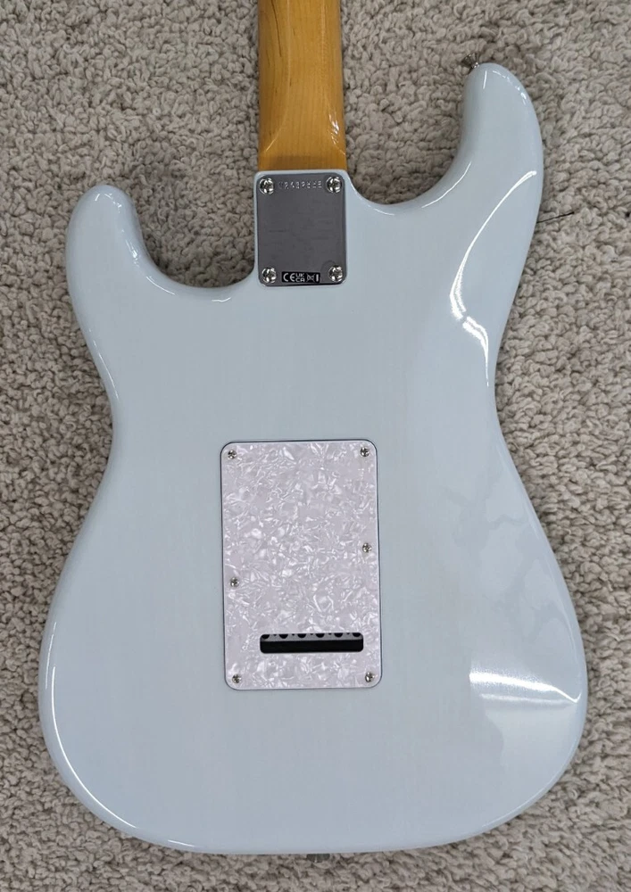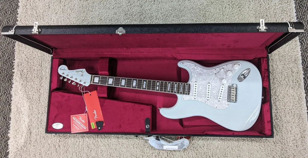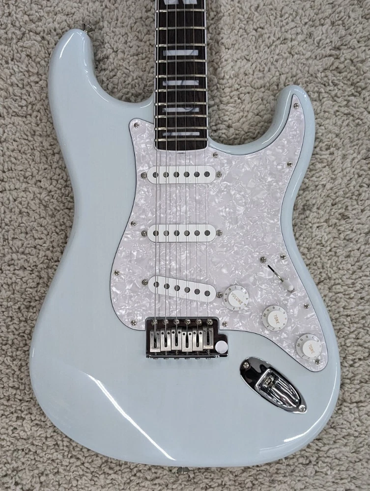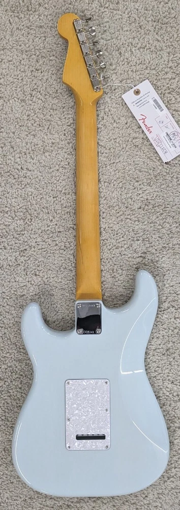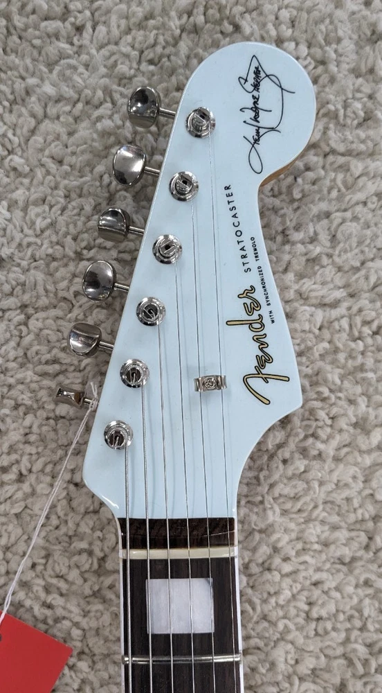Fender Kenny Wayne Shepherd Stratocaster w/Case, Transparent Faded Sonic Blue Description The photos shown are actual photos of the guitar you will receive. It weighs 6 lbs 14.7 oz. Serial number is V2432558. Kenny Wayne Shepherd's fiery leads, meaty rhythms, and hard-driving songs have propelled his robust career through nine solo records - three certified platinum, major tours with Buddy Guy, Van Halen, and The Rolling Stones, and an ongoing collaboration with blues-supergroup The Rides with Stephen Stills. The Kenny Wayne Shepherd Stratocaster features a chambered ash body for vibrant and resonant tone, while the Transparent Faded Sonic Blue lacquer finish highlights the beautiful ash grain. The early '60s inspired "C"-shaped maple neck and bound rosewood fingerboard - with a 7.25" radius - offer comfort and playability straight out of Fender's golden age. Loaded with three Kenny Wayne Shepherd custom pickups, this guitar delivers punchy and full-throated Strat tones. FEATURES Chambered ash body with Transparent Faded Sonic Blue lacquer finish Matching painted headcap 25.5" scale; early '60s "C"-shaped maple neck with bound rosewood fingerboard, 7.25" radius and 21 jumbo frets Kenny Wayne Shepherd custom spec single-coil Stratocaster pickups Updated vintage-style hardware; six-point synchronized tremolo bridge with Graph Tech® saddles and vintage-style tuning machines Specs SKU: 0117510811-V2432558 – Manufacture: Fender Default Specs Case included Yes Handedness Right handed Type Electric Country of Manufacture United States Number of Strings 6 Listing Type Instrument Guitar < > Butler Music LLC Powered by SaleTurf