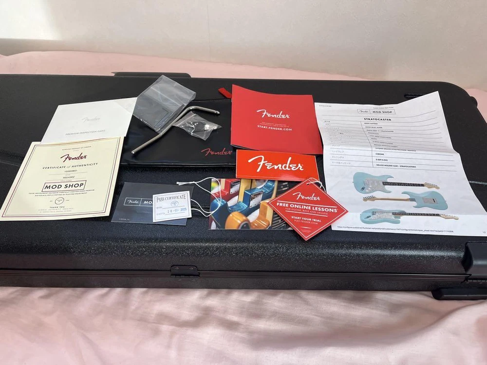 【Notice】 ※You cannot cancel an order after it has been placed and before it has been shiped. (Recently, there have been many cancellations after ordering.Please coisider carefully before purchasing.) ---------------------------------------------------------------------------------------------- 【Item Description】 Ordered from Fender ModShop in April 2024 and received in May of the same year. It has only been played a few times at home and there is almost no fret wear. It has been stored in a hard case so there are no scratches or scuffs. It is practically new. The sound is also amazing, powerful for a Strat. For the specifications, please see the specification sheet that was sent to me when I ordered it, which I have attached. Hard case and accessories are complete. Of course, the truss rod has not been touched. I ordered this Sonic Blue Strat because I wanted one, but I haven't had the chance to play it, so I'm selling it. ----------------------------------------------------------------------------------------------- 【Shipping】 Fedex priory (Free shipping, of course) ※Currently, economy service is not available. ※An additional shipping fee of 150 USD is required only for Australia. ※For Australia, we may use DHL. ※EMS is not available. 【Import Duties】 Import duties, taxes and charges are not included in the item price.These charges are buyer's responsibility. Please check with customs for these addtional costs before bidding or purchasing. Even if you ask us about Import duties, we cannot give you an exact amount.