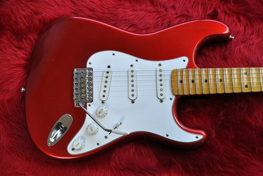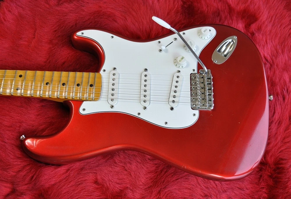 Description MADE IN JAPAN J SERIAL 1990 STRAT made to order during the EXTRAD period Original scalloped maple fingerboard and neck are C-shaped, brass nut Candy apple red basswood body with a moderate reddish lacquer finish Tuners have been replaced with GOTOH locking types PICKGUARD and assembly have been replaced with DIMARZIO INJECTOR™ STRAT® REPLACEMENT PICKGUARD. Paul Gilbert signature pickup "Injector" installed "Injector Neck DP422" on the front, "Area'67 DP419" on the center, and "Injector Bridge DP423" on the rear, Paul Gilbert specifications. Condition: Small paint chips, small scratches, aging, weather checking, etc. (see image) Spring cover missing Good playing condition! The neck and rods are in good condition. Weight: 3.9kg Frets: 60% remaining of the height Fender Tweed Hardcase included Condition: B+: No problems with normal use Shipping Shipping by FedexorEMS (international express mail service, with Tracking and Insurance, handling cost). Fedex takes 1 week, EMS takes 1-2 weeks. We will ship your item within 5 business days with carefully packed. Returns Money back guarantee within 30 days. We offer 30 days money back guarantee for defective products. The buyer must pay for returning it back to us. When there were defects in a item, please contact us. About Us If you have any problem, please contact us. Your satisfaction is important to us. We have results that I sold of tens of thousands of by Internet sale. We have pride ourselves in the Quality of items we offer. All our items has been checked by technician. As every seller dealing with pre-owned branded items in Japan we have as well license from local government to offer services of this kind. We are officially registered as legal business and we have to comply with all rules and regulations including tax requirements from the Japanese government. International Buyers - Please Note: Import duties, taxes and charges are not included in the item price or shipping charges. These charges are the buyer's responsibility. Please check with your country's customs office to determine what these additional costs will be prior to bidding/buying. These charges are normally collected by the delivering freight (shipping) company or when you pick the item up - do not confuse them for additional shipping charges. We do not mark merchandise values below value or mark items as “gifts” - US and International government regulations prohibit such behavior.