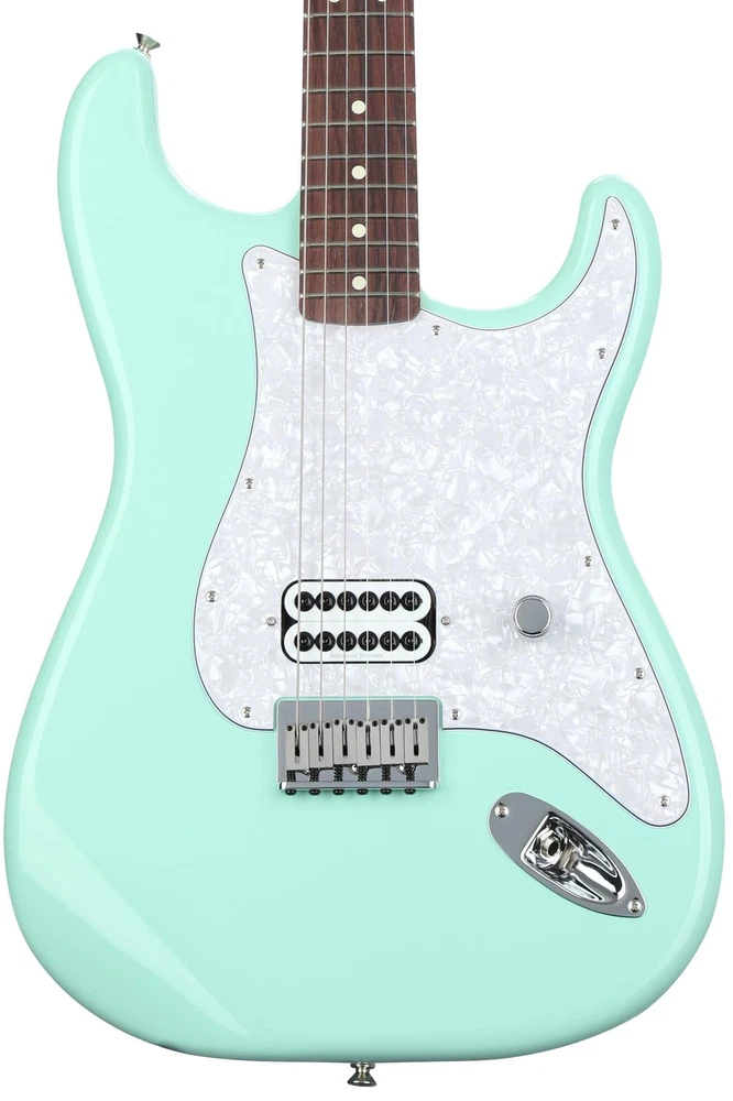 Tom DeLonge’s Single-pickup Signature Pop-Punk Strat Returns Over 20 years ago, Fender teamed with Tom DeLonge to produce a signature series of now much-sought-after single-pickup Strats. A few bands and Blink-182 reunions later, Fender is proud to (re)launch the Fender Tom DeLonge Stratocaster: that very same guitar and the instrument that defined much of Blink-182’s most revered riffs. From the single volume knob to the alder body’s string-through hardtail bridge, every facet of the Fender Tom DeLonge Stratocaster is primed to take the most exuberant down-stroked power-chord beatings without breaking a sweat. And just like the original, the Fender Tom DeLonge Stratocaster comes complete with a single high-power Seymour Duncan Invader SH-8 pickup — a no-brainer for the Blink-182-style pop-punk tone but also more than versatile enough to cover the subtler, effect-laden textures of Tom’s later works. Lastly, the Fender Tom DeLonge Stratocaster comes complete with all the small things Sweetwater is an Authorized Fender Dealer Genuine Open Box Item Sweetwater's 2-year warranty and 55 point inspection Fender Tom DeLonge Stratocaster Electric Guitar - Surf Green Solidbody Electric Guitar with Alder Body, Maple Neck, Rosewood Fingerboard, and 1 Humbucking Pickup - Surf Green Tom DeLonge’s Single-pickup Signature Pop-Punk Strat Returns Over 20 years ago, Fender teamed with Tom DeLonge to produce a signature series of now much-sought-after single-pickup Strats. A few bands and Blink-182 reunions later, Fender is proud to (re)launch the Fender Tom DeLonge Stratocaster: that very same guitar and the instrument that defined much of Blink-182’s most revered riffs. From the single volume knob to the alder body’s string-through hardtail bridge, every facet of the Fender Tom DeLonge Stratocaster is primed to take the most exuberant down-stroked power-chord beatings without breaking a sweat. And just like the original, the Fender Tom DeLonge Stratocaster comes complete with a single high-power Seymour Duncan Invader SH-8 pickup — a no-brainer for the Blink-182-style pop-punk tone but also more than versatile enough to cover the subtler, effect-laden textures of Tom’s later works. Lastly, the Fender Tom DeLonge Stratocaster comes complete with all the small things that made the original such a unique instrument, including several high-energy pastel finishes such as Surf Green, Daphane Blue, Garffiti Yellow, and Black. We can't forget to mention that this pop-punk guitar has a sparkling pearloid pickguard and a large ’70s-style headstock atop the rosewood-capped maple neck. Seymour Duncan Invader humbucker provides pop-punk crunch Tom’s tonal preference for Seymour Duncan’s SH-8 pickups stretches all the way back to his fan-favorite “Sticker Strat,” which was used on much of Blink-182’s earliest output. The Fender Tom DeLonge Stratocaster carries on that tradition with a single bridge-position Seymour Duncan Invader SH-8 humbucker to kick out everything from raucous pop-punk power chord rhythms to the more subtle sonic textures Tom explores with Angels & Airwaves. It’s a decidedly high-power humbucker, packing three large ceramic magnets, overwound coils, and distinctive metal oxide pole pieces that give you an immense low-end response — perfect for snarling riffs and pop-punk style crunchy chords. Hardtail bridge for superior stability A rock-solid 6-saddle, string-through hardtail bridge with block saddles takes the Tom DeLonge Stratocaster’s utilitarian bent even further, forgoing the Strat’s traditional setup for maximum stability. This heavy-duty bridge design accommodates even the most hard-hitting strumming without batting an eye. What’s more, many Sweetwater guitarists praise hardtail Strat designs for their superior sustain and enhanced string-to-body resonance, making it an excellent alternative for players who don’t require a tremolo system. High-performance Modern “C” neck profile The Fender Tom DeLonge Stratocaster’s maple neck comes equipped with a slim and fast-playing Modern “C” profile that’s sure to please players of all backgrounds and styles. It’s an ideal crossroads between the chunky Fender neck profiles of yesteryear and modern ultra-high-performance toothpick profiles, giving you a perfect grip that precisely hits the “just-right” mark for many modern players. The slab rosewood fingerboard is loaded with an equally accommodating setup of 21 medium-jumbo frets in a 9.5-inch radius — a formidable combo that provides effortless chording at the base of the neck and an equally comfortable feel when bending up high. Fender Tom DeLonge Stratocaster Electric Guitar Features: Signature 6-string of pop-punk and alternative icon Tom DeLonge of Blink-182 and Angels & Airwaves Resonant alder body with a string-through hardtail bridge for maximum stability and enhanced tone Maple neck carved into a slim Modern “C” profile for a fast, speedy feel Slab rosewood fingerboard loaded with 21 medium-jumbo frets in a 9.5-inch radius offers slick playability and easy bends across the neck’s entire register Seymour Duncan SH-8 Invader pickup provides an immensely powerful, full-range humbucking tone that’s equally capable of crunchy pop-punk rhythms and cleaner, more nuanced textures A single volume knob with a treble bleed circuit keeps things simple but still provides exceptional tonal flexibility Eye-catching 4-ply pearloid pickguard Vintage-style Fender tuners make changing strings a breeze Signature neck plate with custom Tom DeLonge artwork Specification Detail Number of Strings 6 Left-/Right-handed Right-handed Body Type Solidbody Body Shape Stratocaster Body Material Alder Top Material Alder Color Surf Green Body Finish Gloss Polyester Neck Material Maple Neck Shape Modern C Neck Joint Bolt-on Radius 9.5" Fingerboard Material Slab Rosewood Fingerboard Inlay White Dots Number of Frets 21, Medium Jumbo Scale Length 25.5" Nut Wid