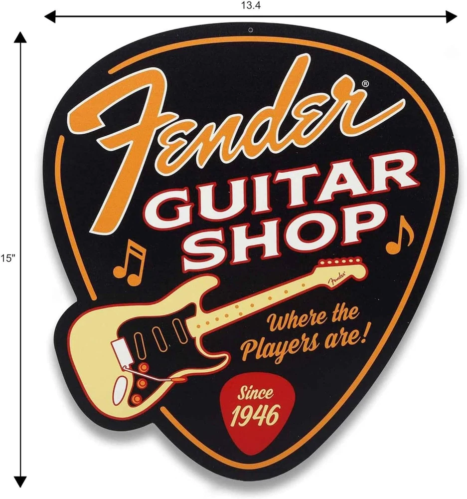 Fast Shipping Great Customer Support Satisfaction Guaranteed DESCRIPTION Shipping Shipping Shipping All domestic packages are shipped for Free (Unless other shipping method was selected during the checkout) Most items ship and arrive much sooner than the estimate delivery date. Usually within 2-3 days from payment. However, we have longer estimates to compensate for the occasional delay or supply chain breakdown. We do not accept P.O. BOXES - PLEASE PROVIDE A PHYSICAL ADDRESS Return Return Return In the event that you would like to return your purchase, we allow returns that are processed within the defined return date (the return date is to be found in the return policy/shipping and handling section) Please contact us for a return authorization and the return shipping address. Payment Payment Payment PayPal is our preferred method of payments it's the quickest, easiest and most secure way to pay for your goods or services online. PayPal offers buyer and seller protection should there be a problem. If you do not have a PayPal account, to get started and buy your first item with us is very easy. Simply click on the 'Buy It Now' button and follow the eBay checkout steps. Select PayPal as the payment method you then will be given the chance to enter your card details in to PayPal's secure checkout in order to pay for your order. Once the payment has been made, you will then be given the opportunity to make your own PayPal account to make paying for your items in the future very easy. Should there be a problem with payment please do let us know. Feedback Feedback Feedback Customer satisfaction is very important to us. If you have any problem with your order,please contact us and we will do our best to make you satisfied, please do not leave a negative feedback before we resolve your problem. We guarantee that your issue will be solved quickly. As long as you are happy with your purchase of , please leave us a positive feedback. Your feedback is very important to us it affects our search placement on eBay. We will leave a positive feedback for you in return automatically once we receive your feedback. Contact Us Contact Us Contact Us If you have any queries, please contact us via ebay. We usually respond within 24 hours on weekdays. Thank you for visiting our ebay store! Fender Official product: Rock out with this fun, eye-catching sign! With a retro design, an illustrated guitar, a guitar pick shape, music shop-inspired text, and a callback to 1946, this old-fashioned decor is a must-have addition to your music memorabilia. Fun Vintage Sign: This unique decor makes the perfect gift for the musician in your life, boasting an undeniably vintage design. Material: This wall art is made of lightweight, durable, and weather-resistant tin, making it easy to hang on any wall. Made in the USA. Places to Use: Personalize your office, music room, or man cave with this colorful wall decor. Fender Pick-Shaped Metal Sign - Vintage Decor for Music Room or Man Cave Click here to see description Fast Shipping Great Customer Support Satisfaction Guaranteed DESCRIPTION Shipping All domestic packages are shipped for Free (Unless other shipping method was selected during the checkout) We ship within two business days of payment, usually sooner Standard FREE shipping takes between 3-5 business days Expedited shipping takes between 2-3 business days Overnight shipping takes between 1-2 business days We do not accept P.O. BOXES - PLEASE PROVIDE A PHYSICAL ADDRESS We Ship Globally using ebay's GSP, the item is sent to a logistic center in KY and shipped from there to the rest of the world. International customers are responsible for all duties and taxes Contact your local authority for questions related to the amount of duties or taxes you will be responsible for Return In the event that you would like to return your purchase, we allow returns that are processed within the defined return date (the return date is to be found in the return policy/shipping and handling section) Please contact us for a return authorization and the return shipping address. Please contact us for a Return Merchandise Authorization (RMA) number. We advise you to use a reputable carrier service when returning your goods. Please pack all returns appropriately. We ship globally Via eBay's global shipping program (GSP). Thus we don't cover returns for items shipped globally. Buyers returning such items will be refunded ONLY for the item's cost and not for the shipping. please check the Voltage information and make sure it matches the one in your country. In case it's not stated in the description, do ask us. Payment PayPal is our preferred method of payments it's the quickest, easiest and most secure way to pay for your goods or services online. PayPal offers buyer and seller protection should there be a problem. If you do not have a PayPal account, to get started and buy your first item with us is very easy. Simply click on the 'Buy It Now' button and follow the eBay checkout steps. Select PayPal as the payment method you then will be given the chance to enter your card details in to PayPal's secure checkout in order to pay for your order. Once the payment has been made, you will then be given the opportunity to make your own PayPal account to make paying for your items in the future very easy. Should there be a problem with payment please do let us know. Feedback Customer satisfaction is very important to us. If you have any problem with your order,please contact us and we will do our best to make you satisfied, please do not leave a negative feedback before we resolve your problem. We guarantee that your issue will be solved quickly. As long as you are happy with your purchase of , please leave us a positive feedback. Your feedback is very important to us it affects our search placement on eBay. We will leave a positive feedback for you in return automatically once we receive your feedback. Contact Us If you have any queries, please contact 