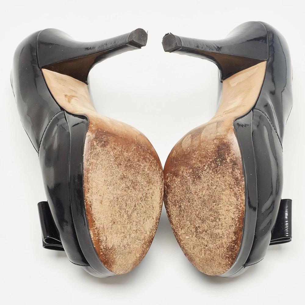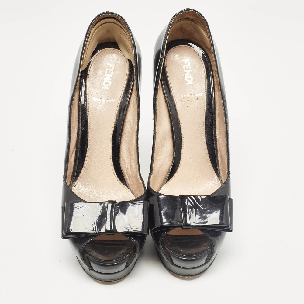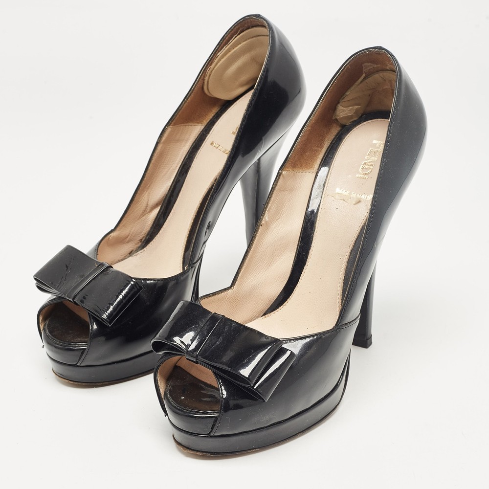 Make a chic style statement with these designer pumps. They showcase sturdy heels and durable soles, perfect for your fashionable outingsCertified by The Luxury Closet - This item has gone through a detailed authentication process overseen by our experts. We offer a lifetime guarantee of authenticity on all our items. Import duties, taxes and charges are not included in the item price. These charges are the buyers responsibility. Please check with your country’s customs office to determine what these additional cost will be prior to buying. Our eBay Store About Us Contact Us Add to Favorite Sellers Fendi Black Patent Leather Bow Peep Toe Platform Pumps Size 38 $151.8 Make a chic style statement with these designer pumps. They showcase sturdy heels and durable soles, perfect for your fashionable outings Product Details Brand Color Black Dimensions Material Patent Leather Size 38 Outsole Width 7.5 cm Outsole Length 18.5 cm Heel Height 14.5 cm Includes The Luxury Closet Packaging Certified by The Luxury Closet This item has gone through a detailed authentication process overseen by our experts. We offer a lifetime guarantee of authenticity on all our items. How We Check The in-house team of experts at The Luxury Closet is highly trained to verify the authenticity and the condition of the luxury products. They ensure that only 100% authentic items are put on sale.The evaluation process is unique with its own mix of assessment criteria and differs according to the category. Each item is evaluated based on the following combination of hallmarks, hardware, stitching, symmetry, material, craftsmanship, stamping, codes, hologram stickers, and packaging. Our authenticators also check if the items have been modified or amended (e.g., aftermarket diamonds, replaced batteries, repaired bags, etc.) International Buyers Import duties, taxes and charges are not included in the item price. These charges are the buyers responsibility. Please check with your country’s customs office to determine what these additional cost will be prior to buying.