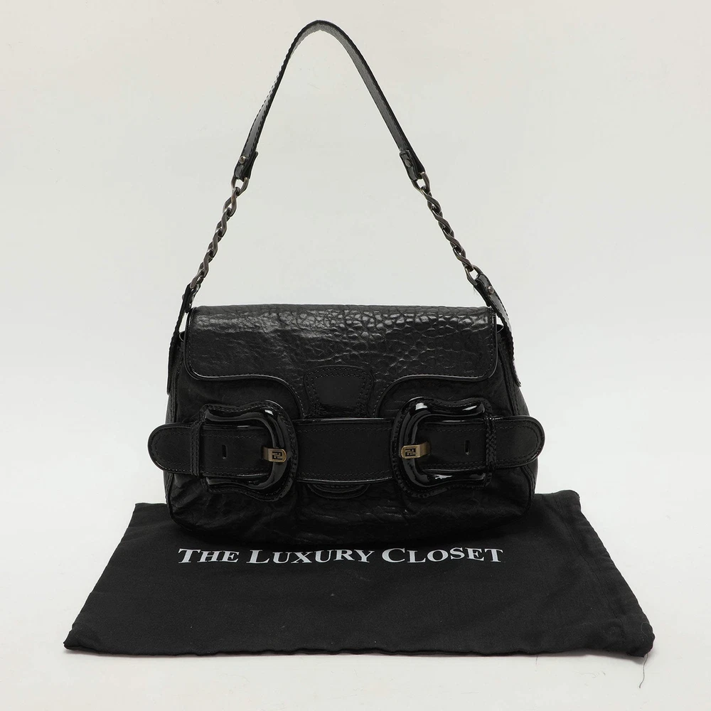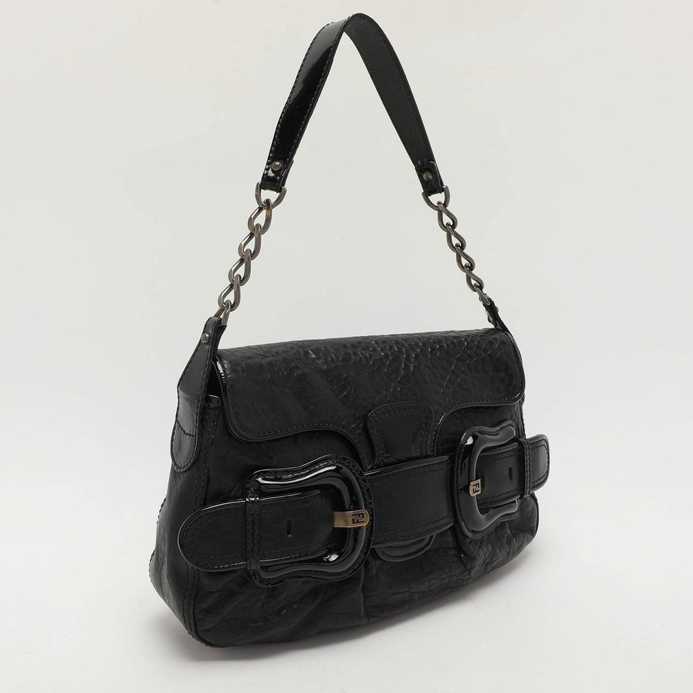 This B Bis shoulder bag from Fendi is both stylish and practical. It is crafted from canvas and features a patent leather strap with oversized buckle accents on the front which helps to tuck in the flap. The interior of the bag is lined with fabric and houses a pocket. It is complete with a single flat top handle for you to carry in style.Certified by The Luxury Closet - This item has gone through a detailed authentication process overseen by our experts. We offer a lifetime guarantee of authenticity on all our items. Import duties, taxes and charges are not included in the item price. These charges are the buyers responsibility. Please check with your country’s customs office to determine what these additional cost will be prior to buying. Our eBay Store About Us Contact Us Add to Favorite Sellers Fendi Black Textured Leather B Bis Shoulder Bag $493.9 This B Bis shoulder bag from Fendi is both stylish and practical. It is crafted from canvas and features a patent leather strap with oversized buckle accents on the front which helps to tuck in the flap. The interior of the bag is lined with fabric and houses a pocket. It is complete with a single flat top handle for you to carry in style. Product Details Brand Color Black Dimensions Height: 20 cm, Width: 5 cm, Length: 30 cm Material Leather Size Outsole Width Outsole Length Heel Height Includes The Luxury Closet Packaging Certified by The Luxury Closet This item has gone through a detailed authentication process overseen by our experts. We offer a lifetime guarantee of authenticity on all our items. How We Check The in-house team of experts at The Luxury Closet is highly trained to verify the authenticity and the condition of the luxury products. They ensure that only 100% authentic items are put on sale.The evaluation process is unique with its own mix of assessment criteria and differs according to the category. Each item is evaluated based on the following combination of hallmarks, hardware, stitching, symmetry, material, craftsmanship, stamping, codes, hologram stickers, and packaging. Our authenticators also check if the items have been modified or amended (e.g., aftermarket diamonds, replaced batteries, repaired bags, etc.) International Buyers Import duties, taxes and charges are not included in the item price. These charges are the buyers responsibility. Please check with your country’s customs office to determine what these additional cost will be prior to buying.