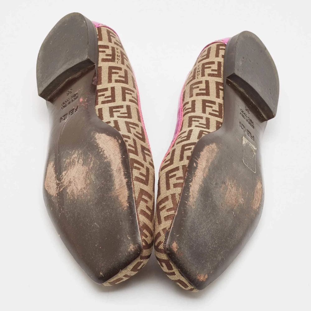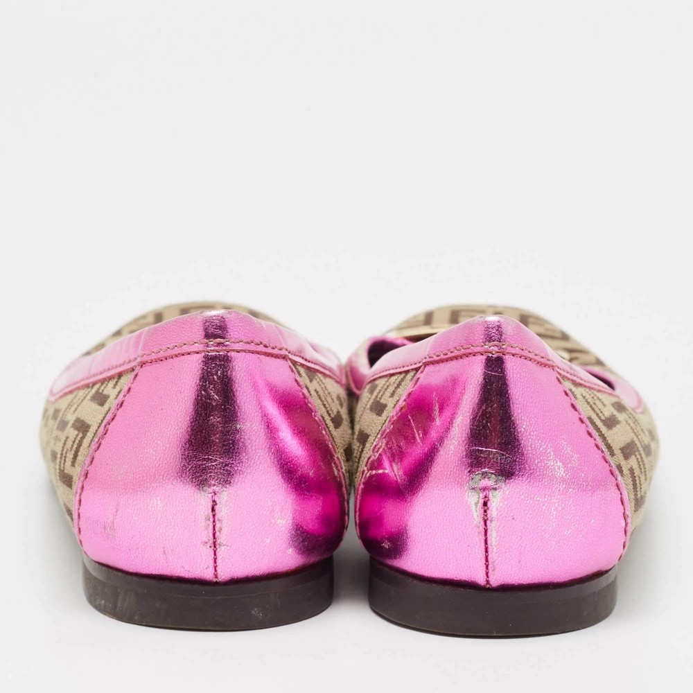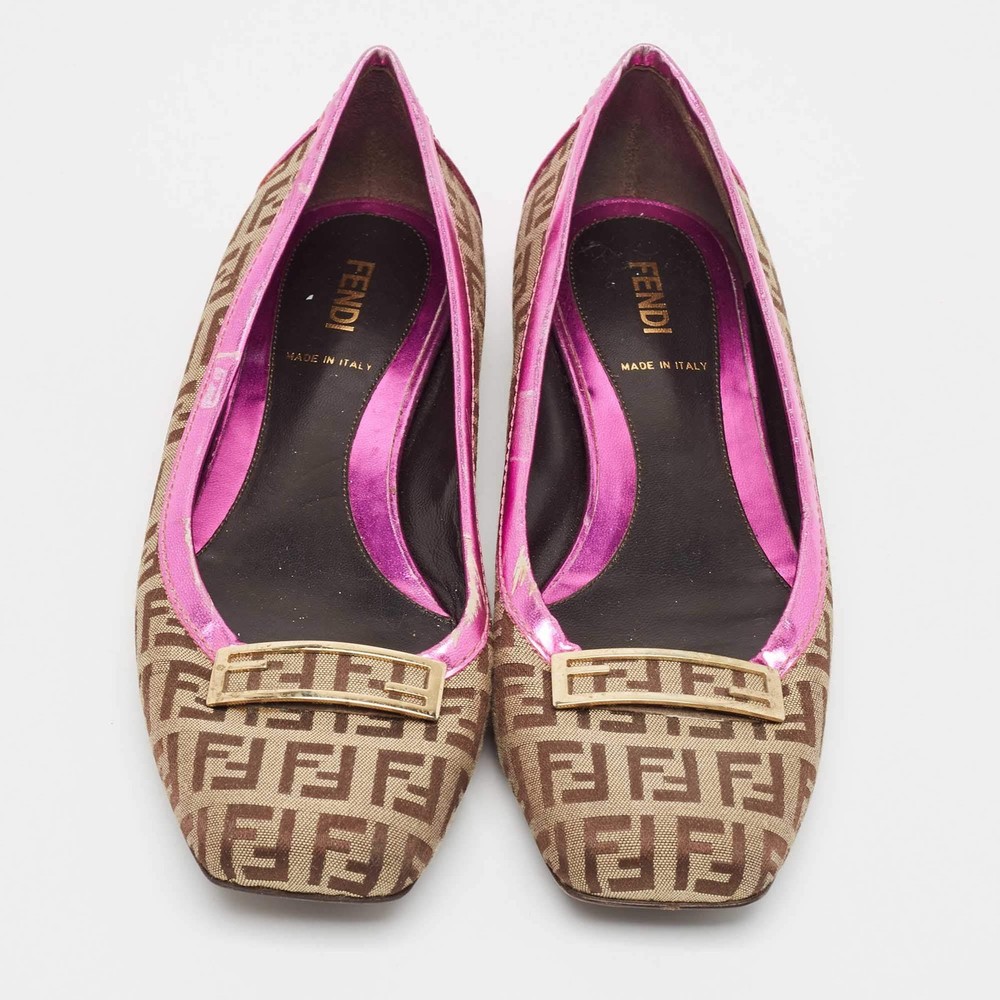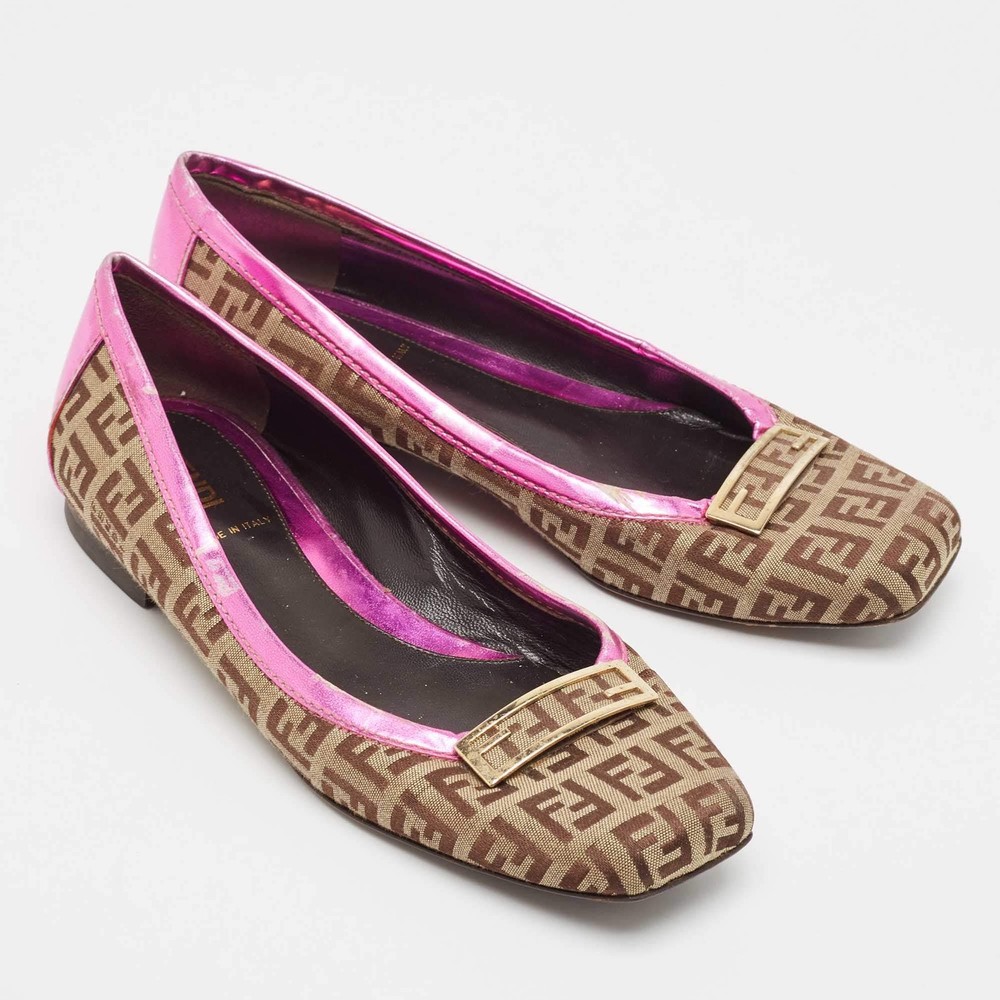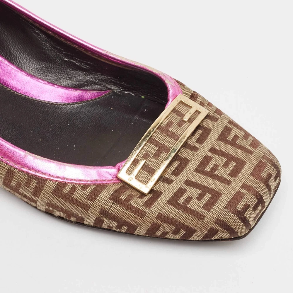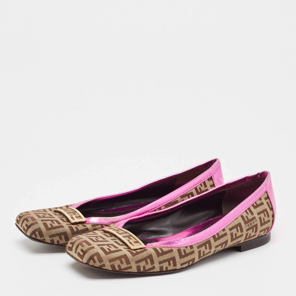 Our eBay Store About Us Contact Us Add to Favorite Sellers Fendi BrownPink Zucca Canvas and Leather Logo Ballet Flats Size 36 A perfect blend of luxury, style, and comfort, these designer flats are made using quality materials and frame your feet in the most elegant way. They can be paired with a host of outfits from your wardrobe. Product Details Brand Fendi Color Brown Includes The Luxury Closet Packaging Outsole Length 24 cm Outsole Width 8.5 cm Size 36 Certified by The Luxury Closet This item has gone through a detailed authentication process overseen by our experts. We offer a lifetime guarantee of authenticity on all our items. How We Check The in-house team of experts at The Luxury Closet is highly trained to verify the authenticity and the condition of the luxury products. They ensure that only 100% authentic items are put on sale.The evaluation process is unique with its own mix of assessment criteria and differs according to the category. Each item is evaluated based on the following combination of hallmarks, hardware, stitching, symmetry, material, craftsmanship, stamping, codes, hologram stickers, and packaging. Our authenticators also check if the items have been modified or amended (e.g., aftermarket diamonds, replaced batteries, repaired bags, etc.) International Buyers Import duties, taxes and charges are not included in the item price. These charges are the buyers responsibility. Please check with your country’s customs office to determine what these additional cost will be prior to buying.