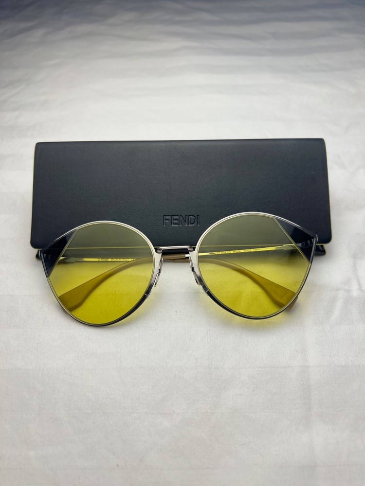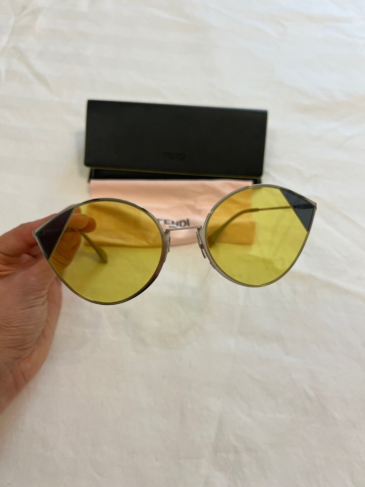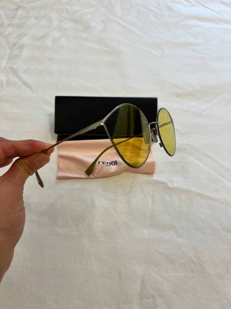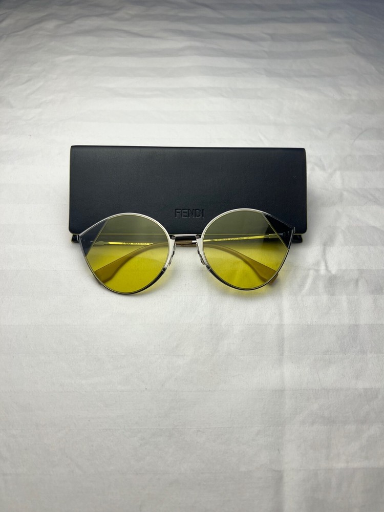 Fendi Women's Cat Eye Sunglasses Silver/Gold - Yellow lens with case! Pre-owned excellent condition - only worn one time. Fast shipping - returns accepted as long as in original condition!