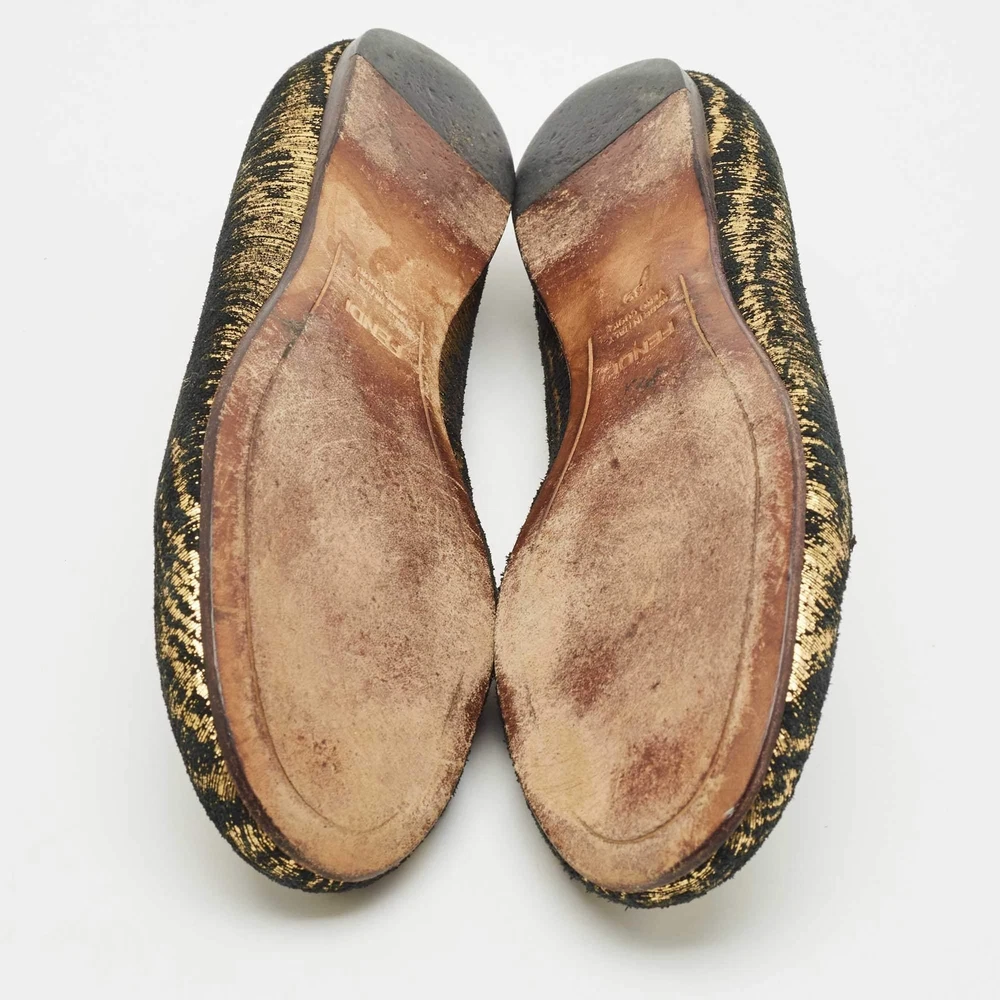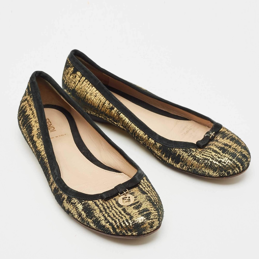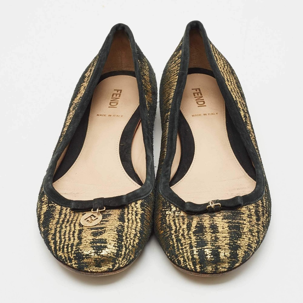 Our eBay Store About Us Contact Us Add to Favorite Sellers Fendi GoldBlack Textured Suede FF Charm Ballet Flats Size 39 Complete your look by adding these designer ballet flats to your collection of everyday footwear. They are crafted skilfully to grant the perfect fit and style. Product Details Brand Fendi Color Gold Includes The Luxury Closet Packaging Outsole Length 26 cm Outsole Width 8 cm Size 39 Certified by The Luxury Closet This item has gone through a detailed authentication process overseen by our experts. We offer a lifetime guarantee of authenticity on all our items. How We Check The in-house team of experts at The Luxury Closet is highly trained to verify the authenticity and the condition of the luxury products. They ensure that only 100% authentic items are put on sale.The evaluation process is unique with its own mix of assessment criteria and differs according to the category. Each item is evaluated based on the following combination of hallmarks, hardware, stitching, symmetry, material, craftsmanship, stamping, codes, hologram stickers, and packaging. Our authenticators also check if the items have been modified or amended (e.g., aftermarket diamonds, replaced batteries, repaired bags, etc.) International Buyers Import duties, taxes and charges are not included in the item price. These charges are the buyers responsibility. Please check with your country’s customs office to determine what these additional cost will be prior to buying.