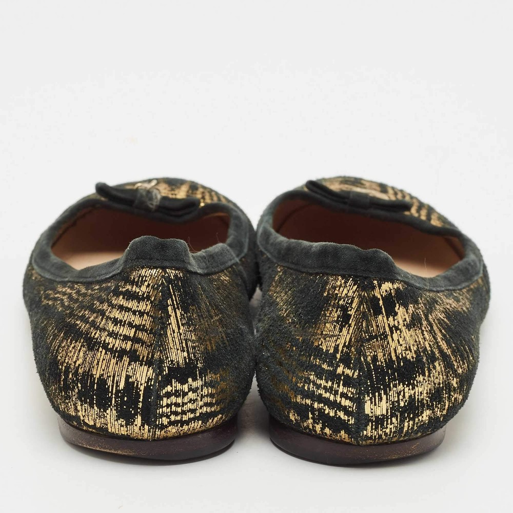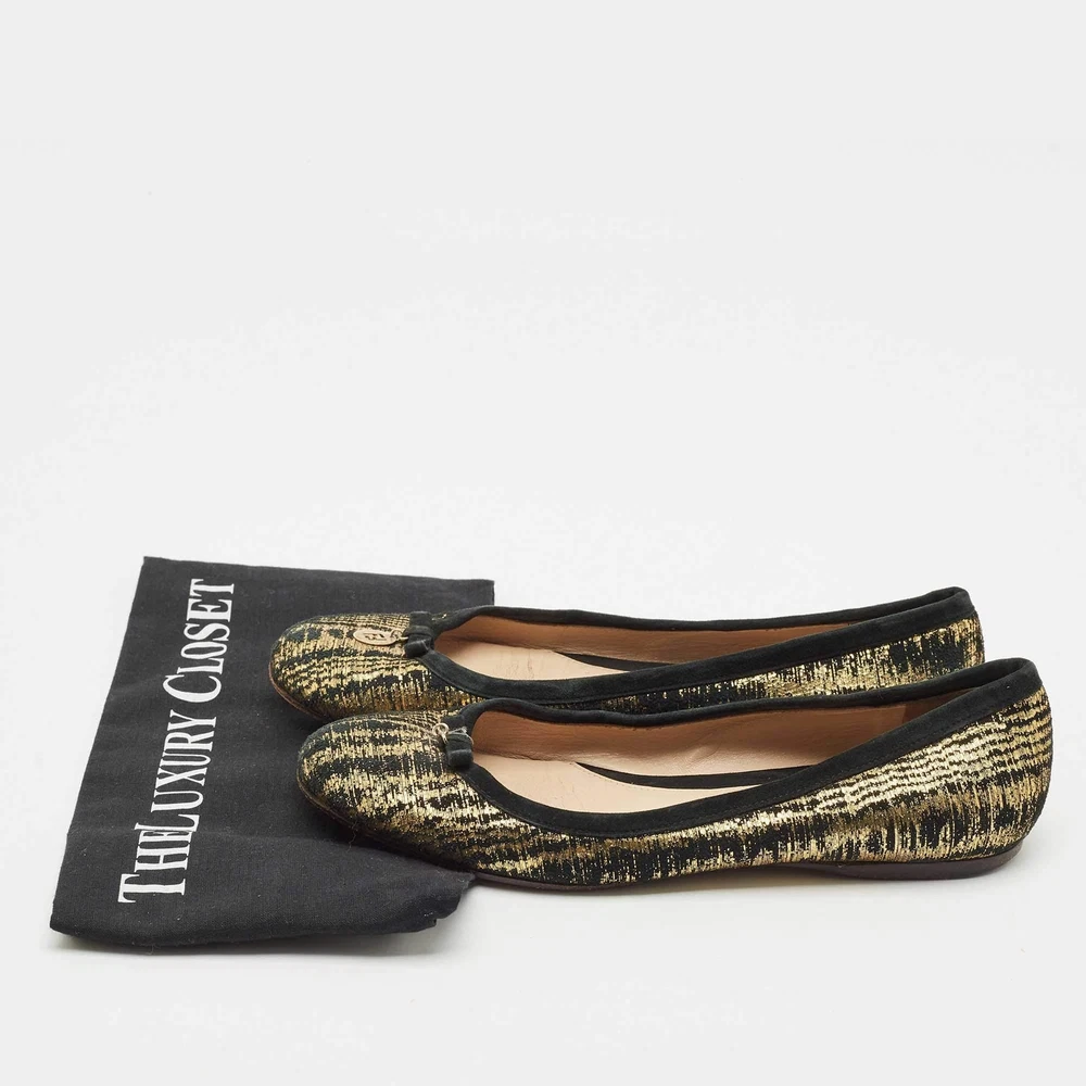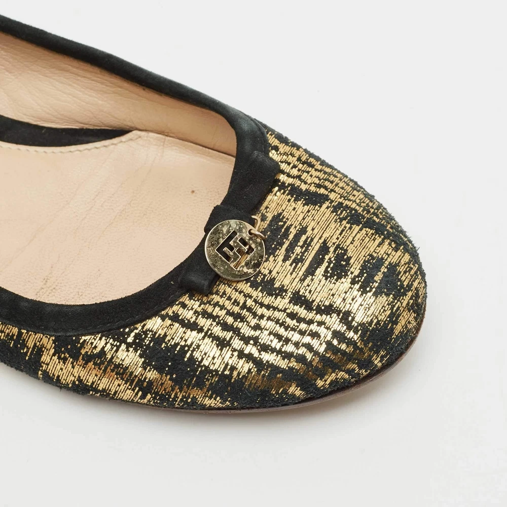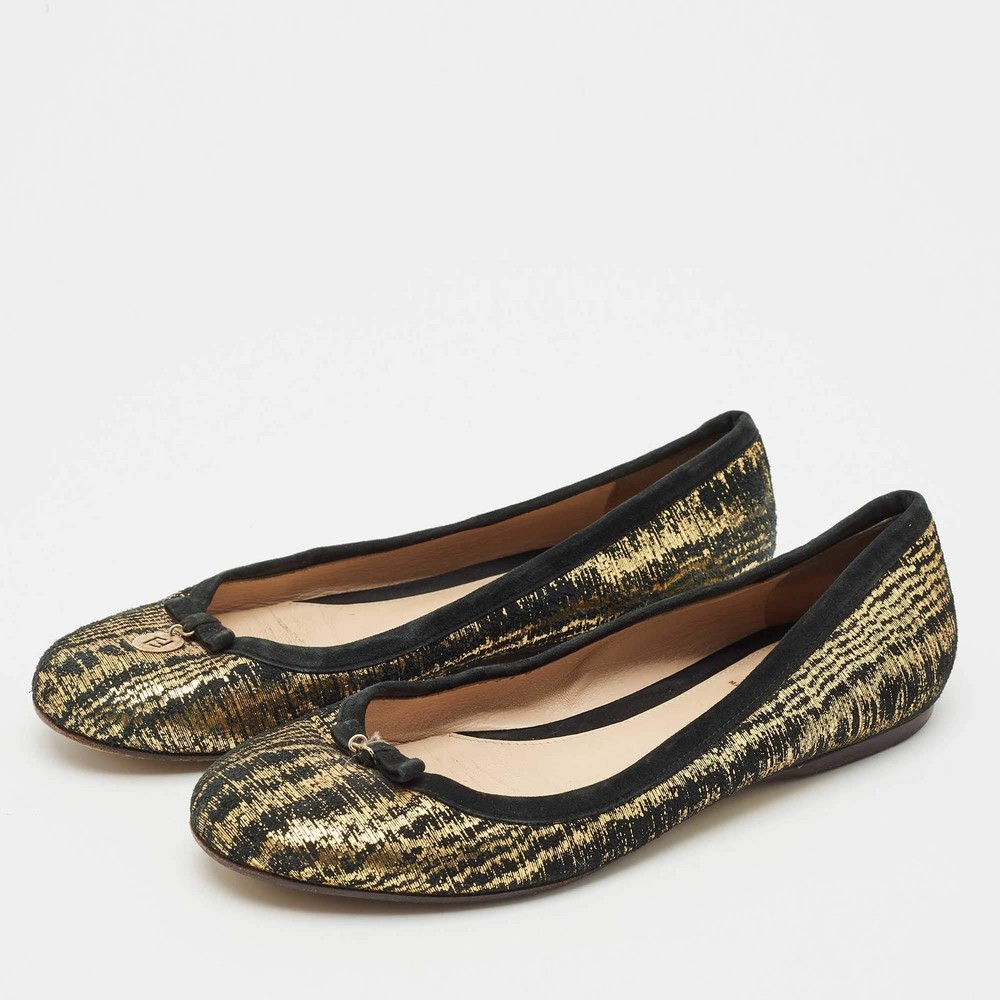 Our eBay Store About Us Contact Us Add to Favorite Sellers Fendi GoldBlack Textured Suede FF Charm Ballet Flats Size 39 Complete your look by adding these designer ballet flats to your collection of everyday footwear. They are crafted skilfully to grant the perfect fit and style. Product Details Brand Fendi Color Gold Includes The Luxury Closet Packaging Outsole Length 26 cm Outsole Width 8 cm Size 39 Certified by The Luxury Closet This item has gone through a detailed authentication process overseen by our experts. We offer a lifetime guarantee of authenticity on all our items. How We Check The in-house team of experts at The Luxury Closet is highly trained to verify the authenticity and the condition of the luxury products. They ensure that only 100% authentic items are put on sale.The evaluation process is unique with its own mix of assessment criteria and differs according to the category. Each item is evaluated based on the following combination of hallmarks, hardware, stitching, symmetry, material, craftsmanship, stamping, codes, hologram stickers, and packaging. Our authenticators also check if the items have been modified or amended (e.g., aftermarket diamonds, replaced batteries, repaired bags, etc.) International Buyers Import duties, taxes and charges are not included in the item price. These charges are the buyers responsibility. Please check with your country’s customs office to determine what these additional cost will be prior to buying.