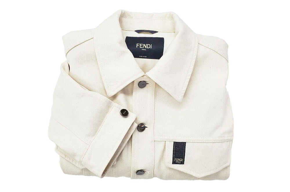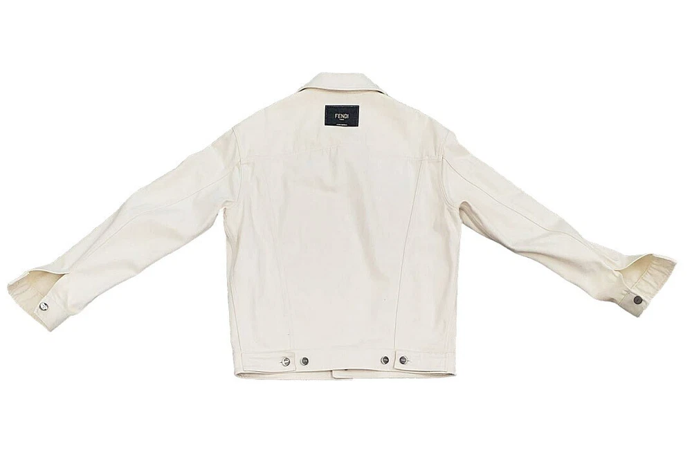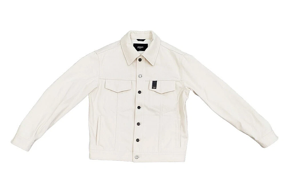 Fendi Logo Patch Denim Jacket 12Cpf-22-171 Size 46 White Cotton Popular .2831.