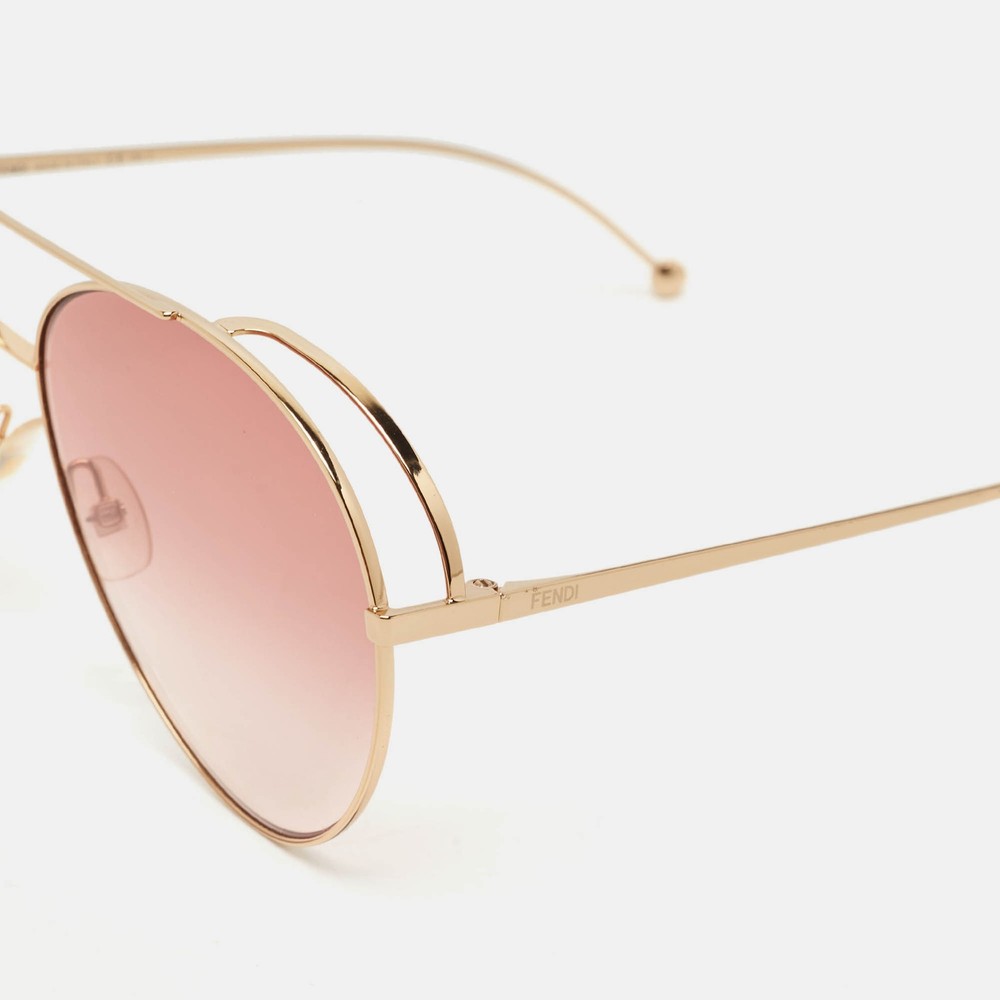 Fendi’s FF0286/S aviators feature a pink and gold gradient lens with sleek gold tone frames. The oversized silhouette offers both glamour and protection. Wear them with flowy silhouettes and sunlit backdrops for full effect.Certified by The Luxury Closet - This item has gone through a detailed authentication process overseen by our experts. We offer a lifetime guarantee of authenticity on all our items. Import duties, taxes and charges are not included in the item price. These charges are the buyers responsibility. Please check with your country’s customs office to determine what these additional cost will be prior to buying. Our eBay Store About Us Contact Us Add to Favorite Sellers Fendi Pink/Gold Gradient FF0286/S Aviator Sunglasses $365.2 Fendi’s FF0286/S aviators feature a pink and gold gradient lens with sleek gold tone frames. The oversized silhouette offers both glamour and protection. Wear them with flowy silhouettes and sunlit backdrops for full effect. Product Details Brand Color Pink Dimensions Material Metal Size Outsole Width Outsole Length Heel Height Includes Certified by The Luxury Closet This item has gone through a detailed authentication process overseen by our experts. We offer a lifetime guarantee of authenticity on all our items. How We Check The in-house team of experts at The Luxury Closet is highly trained to verify the authenticity and the condition of the luxury products. They ensure that only 100% authentic items are put on sale.The evaluation process is unique with its own mix of assessment criteria and differs according to the category. Each item is evaluated based on the following combination of hallmarks, hardware, stitching, symmetry, material, craftsmanship, stamping, codes, hologram stickers, and packaging. Our authenticators also check if the items have been modified or amended (e.g., aftermarket diamonds, replaced batteries, repaired bags, etc.) International Buyers Import duties, taxes and charges are not included in the item price. These charges are the buyers responsibility. Please check with your country’s customs office to determine what these additional cost will be prior to buying.