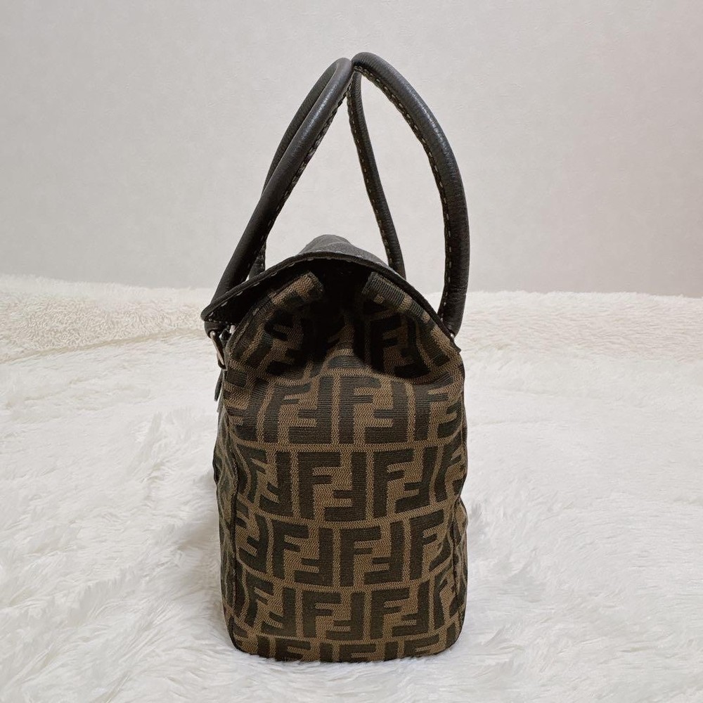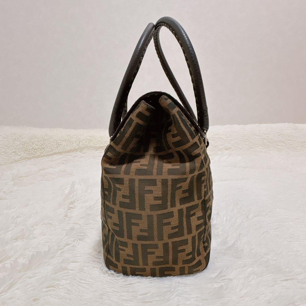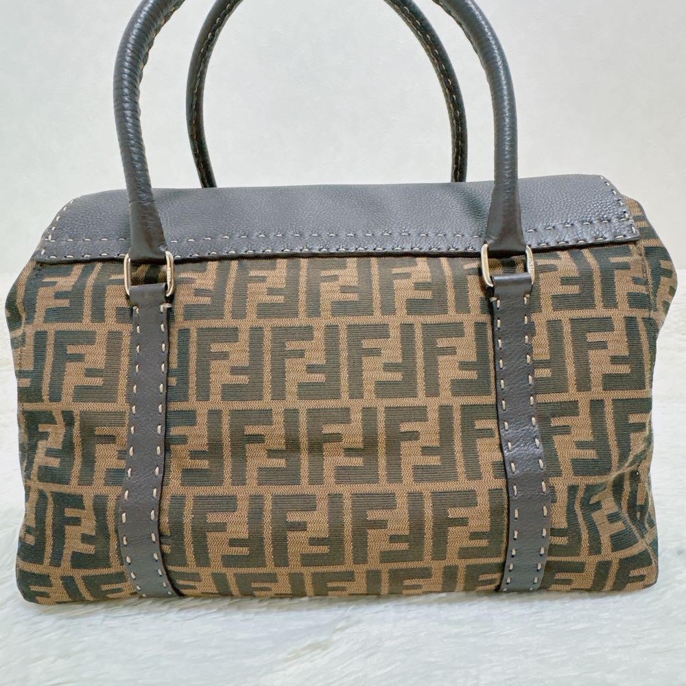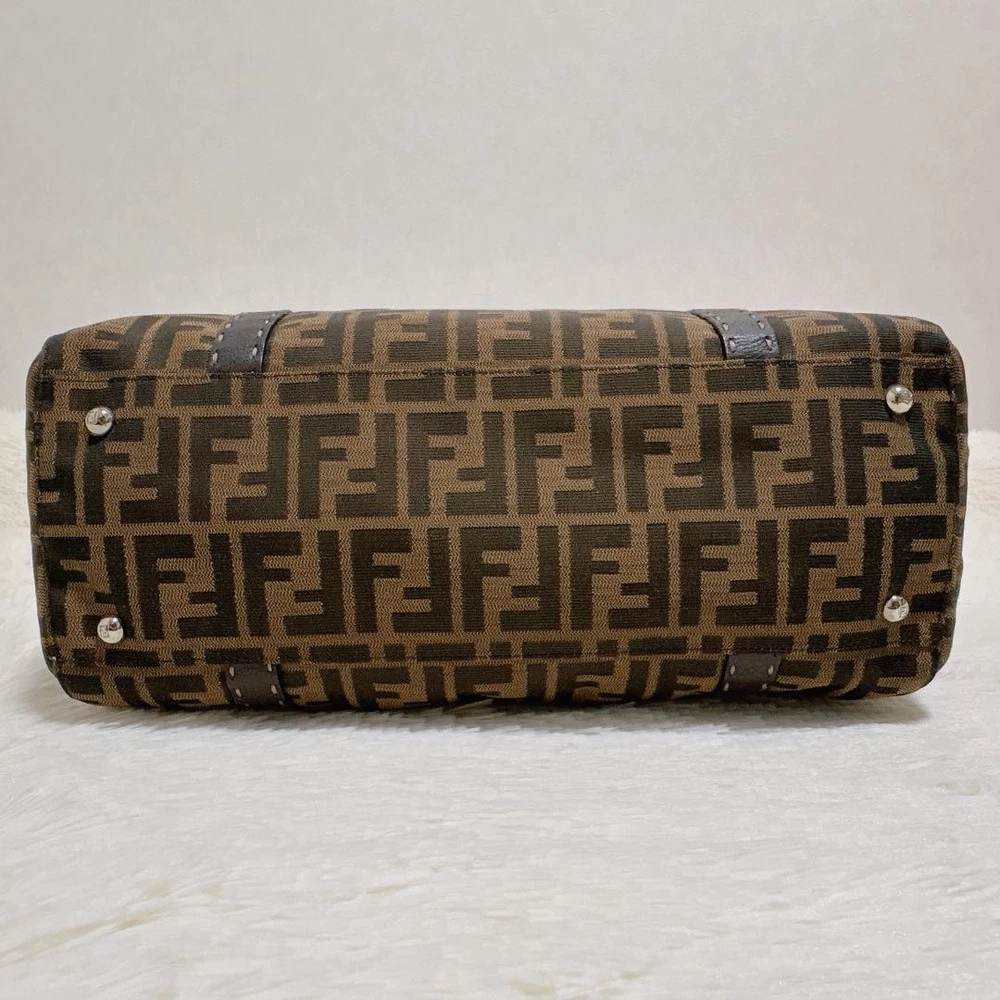 This is a Fendi Selleria Linda handbag featuring the iconic Zucca pattern combined with high-quality leather, showcasing a vintage charm. The dimensions are: Height 9.84 inches, Width 13.19 inches, Depth 4.33 inches, Handle Length 19.69 inches, and Handle Height 6.30 inches. It features a magnetic closure and one interior zipper pocket. There are some scuffs and stains on the interior and leather parts due to use, but it is in relatively good condition. The canvas part shows no noticeable stains or scuffs. Notably, there is a slight perfume odor. The color is brown and khaki (Zucca pattern). The materials are canvas and leather. I promise fast shipping via FedEx or DHL as soon as possible! Import duties, taxes and charges are not included in the item price or shipping charges. These charges are the buyer’s responsibility. These charges are normally collected by the delivering freight (shipping) company or when you pick the item up - do not confuse them for additional shipping charges.