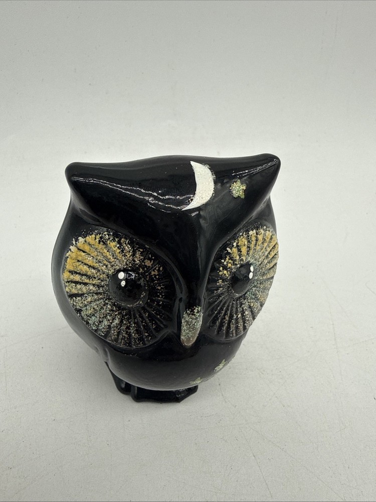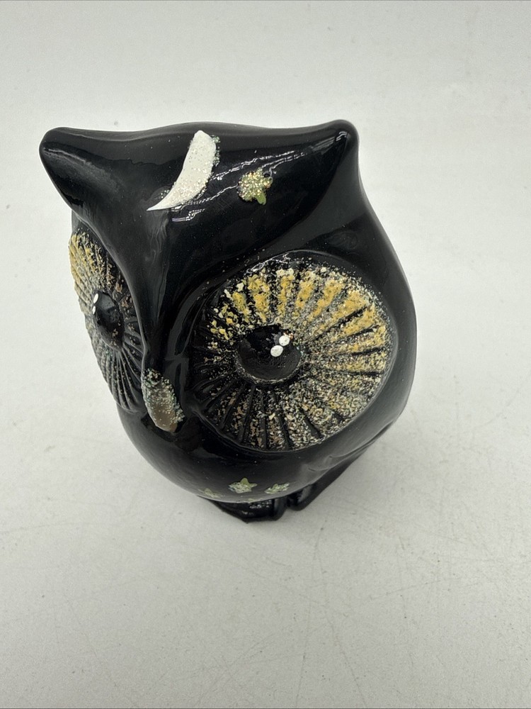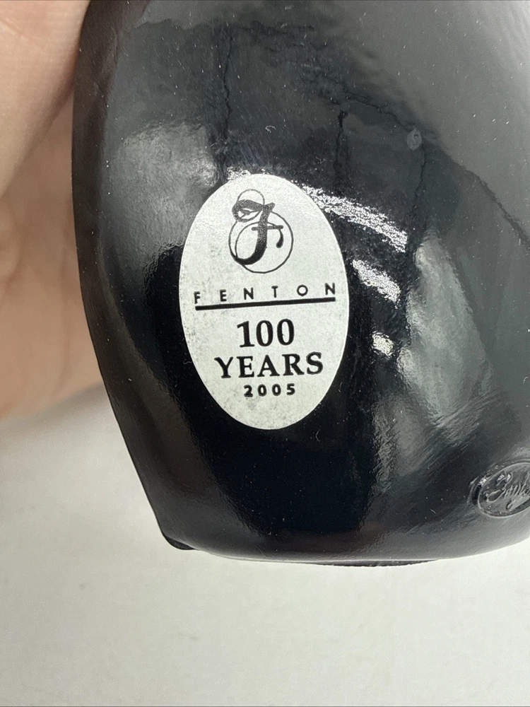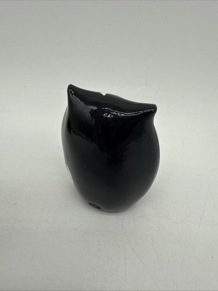 The Fenton 2005 Hand Painted Black Hootie Owl Nightime Moon & Stars Figurine is a beautifully crafted piece of art glass featuring a hand-painted owl design on a black glass base. This unique figurine captures the essence of the nightime moon and stars, adding a touch of whimsy and charm to any decor. The Fenton brand is known for its exquisite craftsmanship and attention to detail, making this piece a special addition to any collection of decorative pottery and glassware.