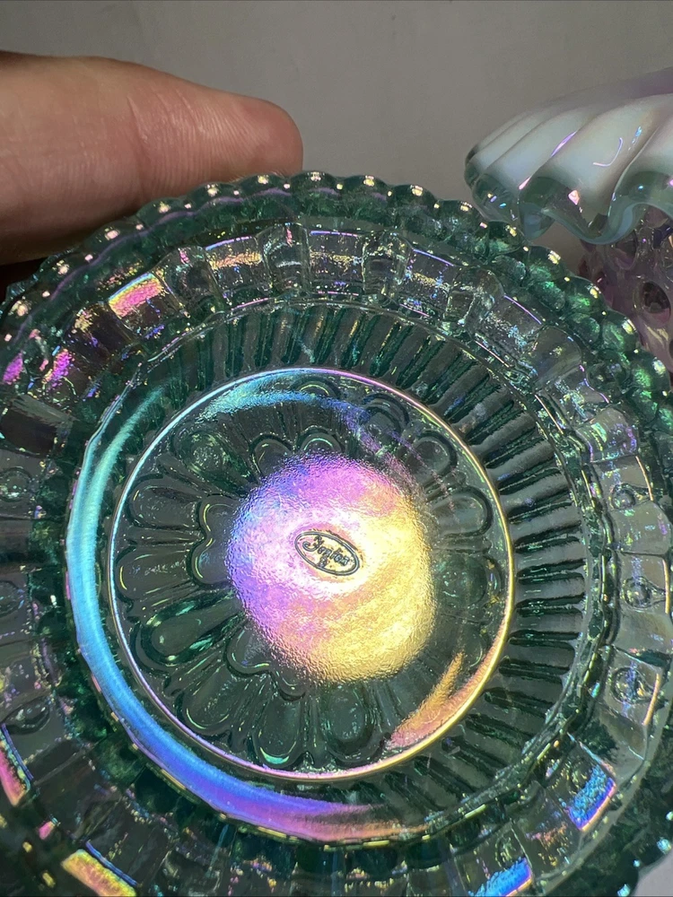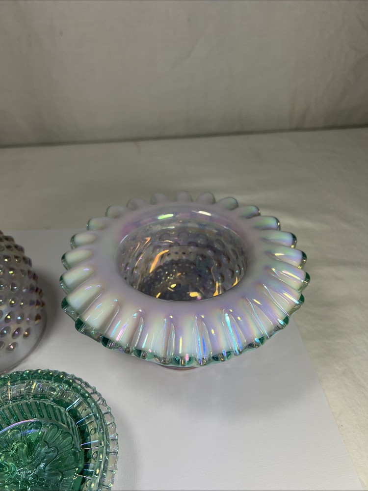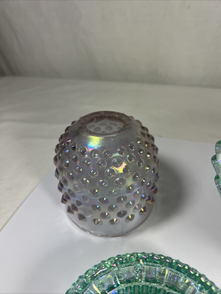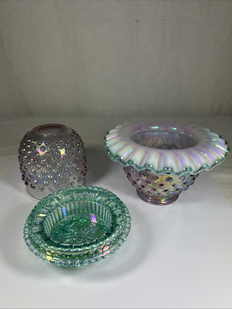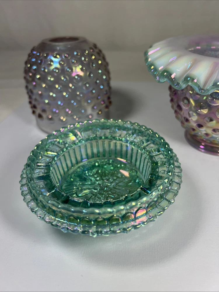 Number in Pack:1Subject:3 Piece Fairy LampColor:Rose Magnolia W/ Sea Mist Green InsertType:Candle HolderPattern:HobnailMaterial:GlassCountry of Origin:United StatesFinish:IridescentBrand:FentonStyle:1994