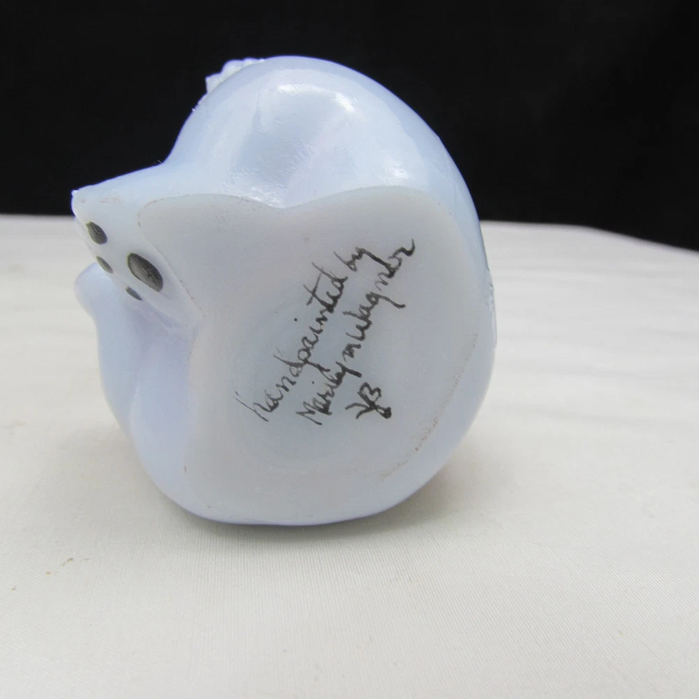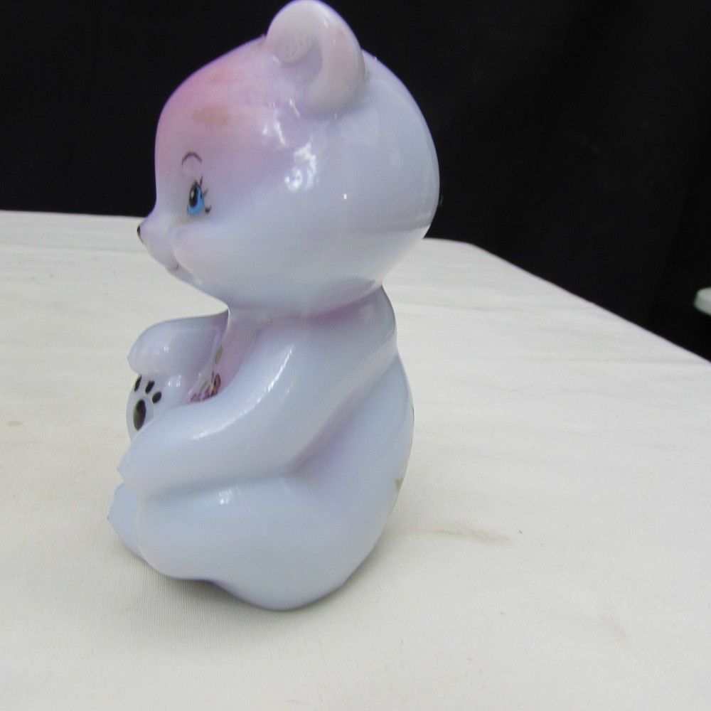 Fenton Blue Burmese OOAK HP Sitting Bear Stands 3 1/2 inches tall and 2 inches wide Beautifully hand painted on this piece. This piece is marked and signed by the artist. This piece is a One of A Kind done by Marilyn Wagner. This gem comes to you in great condition free from any issues with cracks, chips or repairs. Please refer to each picture for overall condition of this piece as they are part of the description. A really nice piece to add to anyone's collection! Make it part of yours today! Please take a moment to look at my other great items up for auction at great prices. I ship priority for insurance and tracking purposes. I ship out no later than next business day after payment is received so you can enjoy your new treasure faster. All items are securely packed so they arrive in great condition. I will combine shipping as long as it does not interfere with the pieces arriving safe and sound. I do try to double box most items. I try to list all defects that I can see and feel however I am no expert so please look over the pictures carefully and if you have any questions please let me know. I strive for 100% satisfaction so if there is any issue with your purchase please contact me first to resolve. Thank you for stopping by and Happy Bidding!!!! PA State Residents will add 6% for State Tax on invoice.