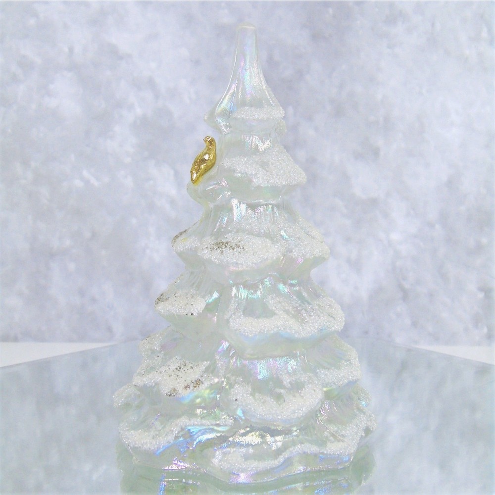 You Are Looking To Buy: Vintage Fenton Large CHRISTMAS TREE 6.5" Iridescent White Gold Snow Frosted With Gold Partridge Bird - NEW Condition! Features: This Fenton Glass White Iridescent Snow & Gold Frosted Tree with 22k Gold Partridge Bird Will Add Elegance To Any Table! Iridescent Fenton Glass With Frosted Detail & 22k Gold Partridge Bird Perched Near Top Size: Large 6.5" Tall NEW Condition! Great Gift for Her - or For Yourself! Buy In Confidence From 100% Positive Feedback Seller Thank You! We will ship your order immediately upon receipt of payment. For your convenience, we do combine shipping and often discounts on multiple item orders to same address. mi
