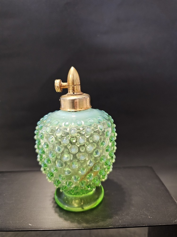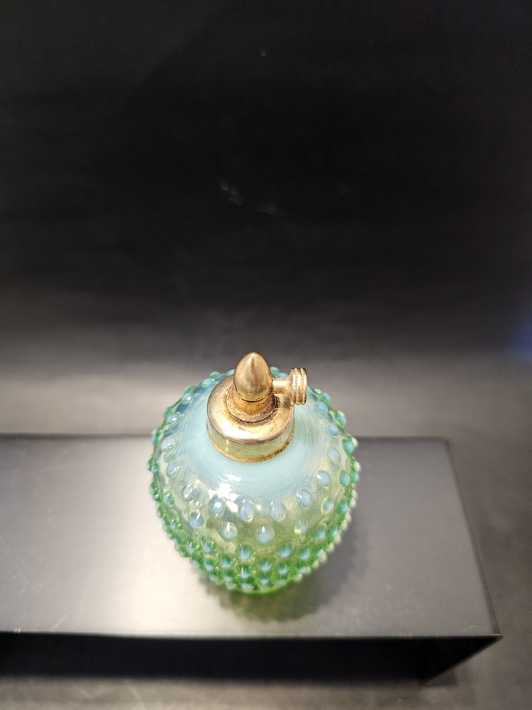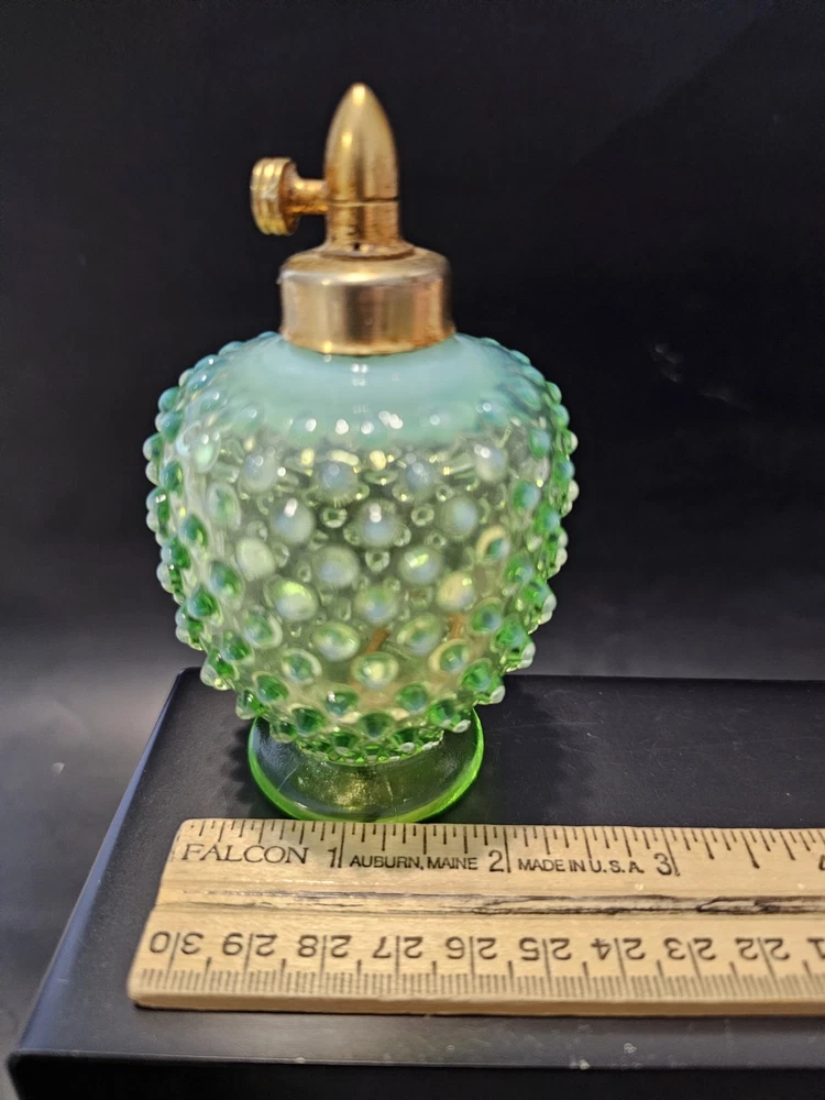 $ 52.8Fenton Uranium Glass Perfume Bottle DeVilbiss Green Opalescent Hobnail With Bulb
