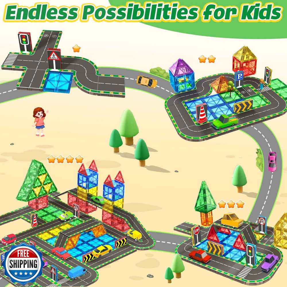 Feoxialy Magnetic Tiles for Kids Ages 3-5 4-8 Magnetic Building Blocks 64PCS Road Toppers Set for Toddlers Creative Learning Construction Toys Gift for Kids 3 4 5 6 7+Year Old Boys Girls Birthday Features 【100% Complete Compatible】Our raod snap-on toppers and magnet building blocks are fully compatible with all major magnetic tiles brands on the market. Kids can not only use this set but also connect it with their existing building toys, making their creations more colorful and diverse. Ideal toys for 3 4 5 6 7 8+ year old boys girls toddlers play needs. 【Boosts Creativity and Thinking Skills】Every child is a little architect! This magnetic tile road set helps kids enhance their spatial thinking, problem-solving skills, and creativity. Our learning & educational toys for kids age 3-5 4-8 help promote children's imagination and hands-on skills, allowing them to grow through play. 【Safty As Top Priority】Our magnetic tiles road tape for toy cars are made from high-quality PVC, and magnets, making them wipeable, waterproof and reused. The magnet tiles for kids are made from food-grade ABS plastic, with smooth edges on each tile. Therefore, parents no longer have to worry about their children getting hurt or not having enough fun. 【Suitable for Any Occasion】This construction toy road play mat is a must-have for both classrooms and homes. It not only enhances parent-child interaction but also fosters social engagement and teamwork. Plus, it’s lightweight, making it easy to play anywhere, whether at the park or on the beach. Good choice for birthday, christmas gifts for kids. 【Endless Fun Play】Our magnetic tiles road toy car mat with roads for kids consists of 30 add-on toppers, 34 magnet blocks, children can create various scenes from easy to difficult, such as viaduct, bridge, airport, vila, or urban transport. As learning resources, magnetic blocks for toddlers help kids learn basic physics concepts, colors, and shapes while they play. Shipping Free & Fast Shipping: We offer free shipping to most of the USA with a normal delivery time of 3-7 days. However, due to the current situation, additional delivery time (up to 3 weeks) may be required for some items. Alternative Carriers: We may use alternative carriers (e.g., USPS, FedEx, UPS) to ensure your package arrives safely and on time. Due to the use of multiple carriers, we are unable to provide a tracking number automatically. Handling Time: Orders are processed and shipped within 1-2 business days of receiving cleared payment. Shipping Restrictions: Shipping to Alaska, Hawaii, Puerto Rico, Guam, and other US territories may incur shipping charges or delivery restrictions. Please contact us before ordering, or your order can be refunded/cancelled. State Restrictions: Certain items may not be shipped to California due to state regulations. Contact for Tracking Updates: If you require tracking updates or have any concerns about the delivery of your order, please feel free to contact us, and we will be happy to assist you. Return Policy 30-Day Hassle-Free Returns: If you are not completely satisfied with your purchase, you can return the item for free within 30 days of receiving it for a full refund or exchange. Easy Return Process: Contact us, and we will provide you with a prepaid return shipping label and detailed instructions. No Restocking Fee: There are no restocking fees for returns. However, the buyer is responsible for return shipping costs if the return is not due to a seller"s error. Refund Processing: Refunds will be processed within 1 business day of receiving the returned item in its original condition. Feedback Your feedback is extremely important to us. We strive to provide the best products and customer service possible. If you are satisfied with your purchase, please take a moment to leave us a positive review. If you have any concerns or issues with your order, please contact us before leaving negative feedback. We are committed to resolving any problems and ensuring your satisfaction. Contact Us If you have any questions or concerns, please feel free to reach out to our customer support team. You can contact us through the eBay messaging system. We are available Monday to Friday, 9:00 am to 5:00 pm EST, and we will do our best to respond to your inquiry within 24 hours. Thank you for supporting our small family business!