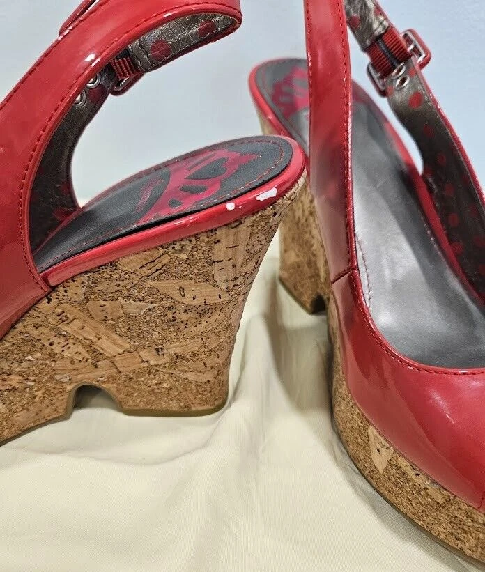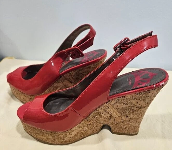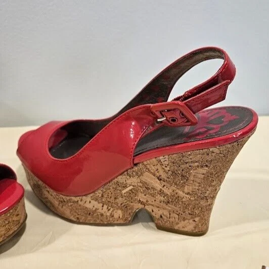 Fergalicious Women Red wedge shoes size 8 Peep Toe Cork bottom Chic City Beauty