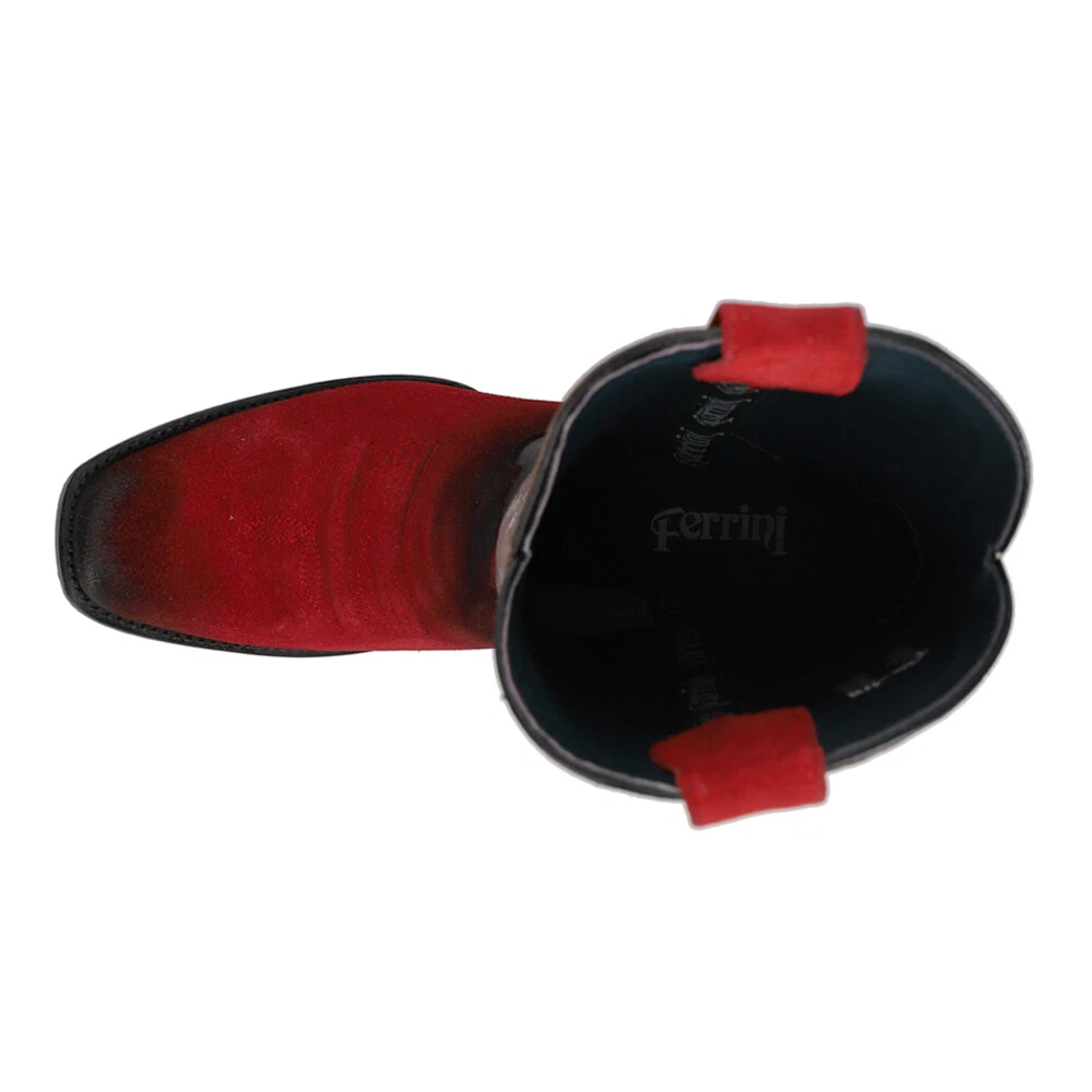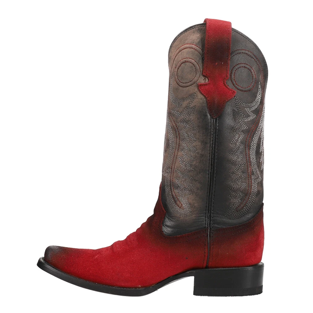Roughrider Embroidered Narrow Square Toe Cowboy Boots Product Details Full grain leather upper Pull on entry 10.5 inch shaft 1 1/2 inch heel Leather outsole Our classic premium roughout western boot with a snappy narrow square toe, undershot walking heel and leather sole. Accented with a toe bug and detailed upper that you will appreciate and others will notice. Additional Details Color: Red Occasion: Casual Gender: Mens Age: Adult Brand: Ferrini