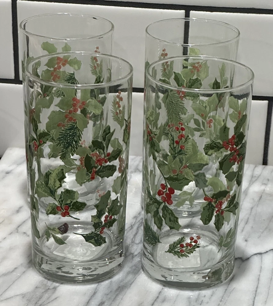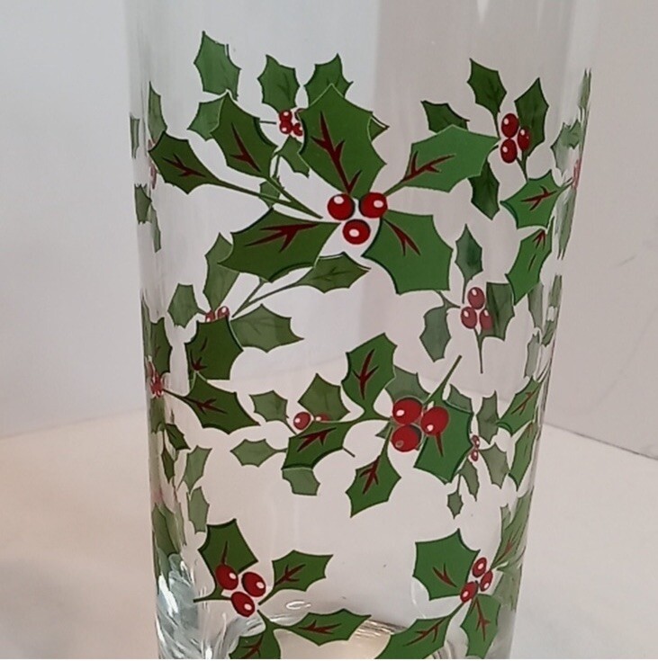 This Christmas Holly Berry Drinking Glasses Tumblers Set of 4 is a festive addition to your holiday table setting. Each glass features a holly pattern on a round shape, adding a touch of seasonal charm to your dining experience. Made of glass with a 12oz capacity, these tumblers are perfect for serving your favorite holiday beverages. The set is designed for adults and is a four-piece bundle, making it ideal for gatherings during the Christmas season. The multicolor design and decorated features add a merry and bright touch to your home decor.