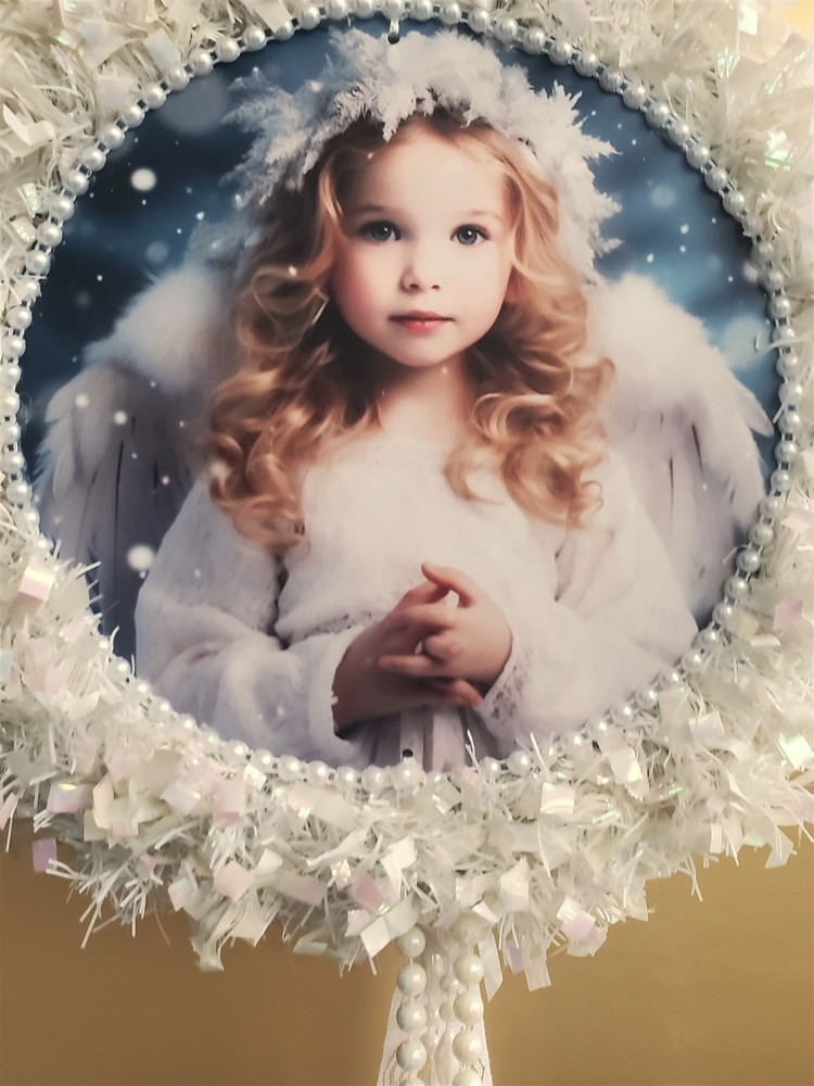 New Christmas Holiday Angel Girl wreath Wall Door Decoration Brand: Handmade One of a kind Angel Girl Wreath Decorated with sparking garland, Faux Pearls, Beads and Lace Has a bead hanger on top for easy hanging Metal sign of a beautiful Girl Angel Colors White and Blue Measures 22 Inches Long From Top of Bead hanger to bottom of Beads 12 Inches Wide Can be hung a Wall or Front Door So Charming, Elegant, Unique, and Beautiful Please see Photos for more description COMES FROM A SMOKE FREE HOME Any questions please feel free to ask me. Thanks for looking COME AND SEE MY other items Powered by SixBit's eCommerce Solution