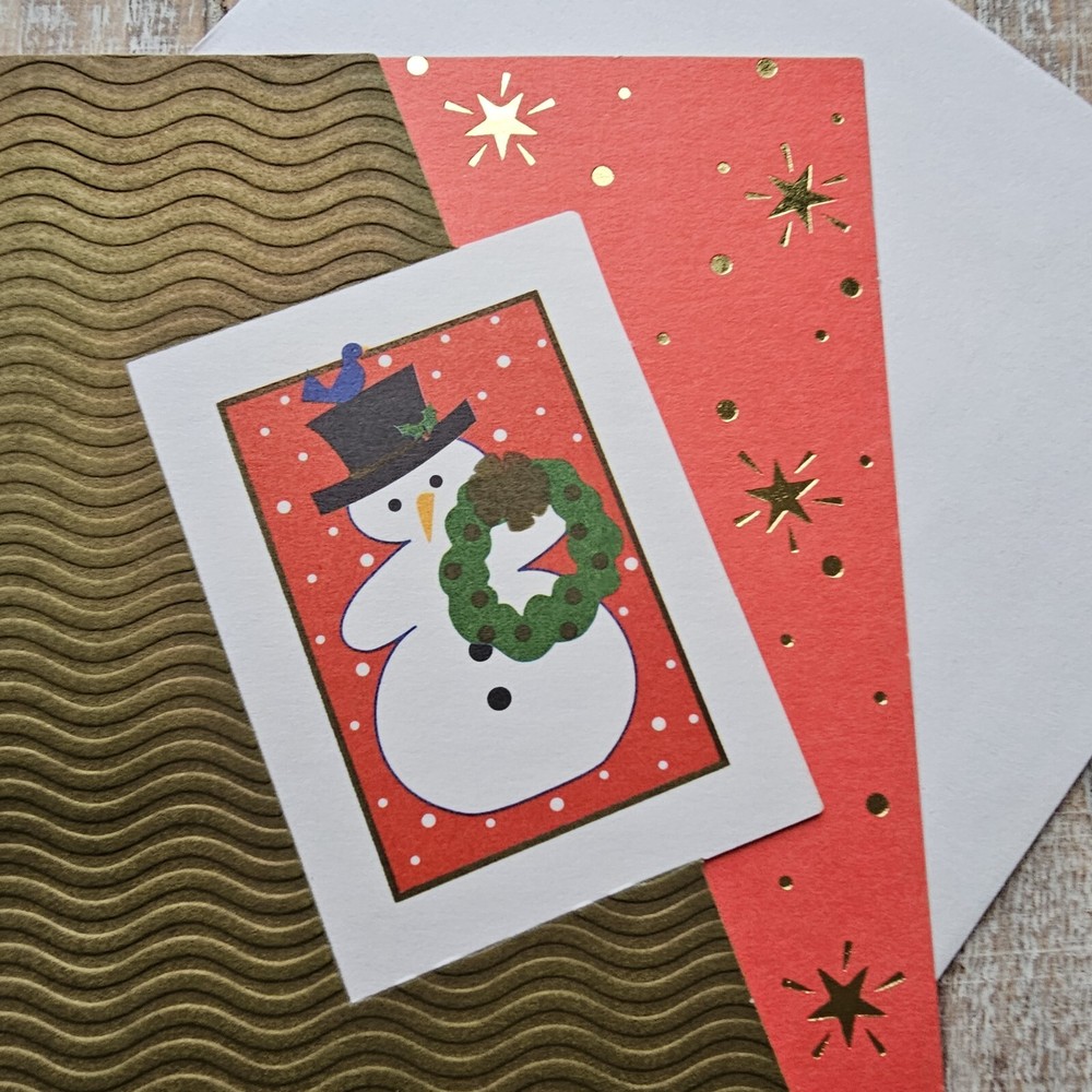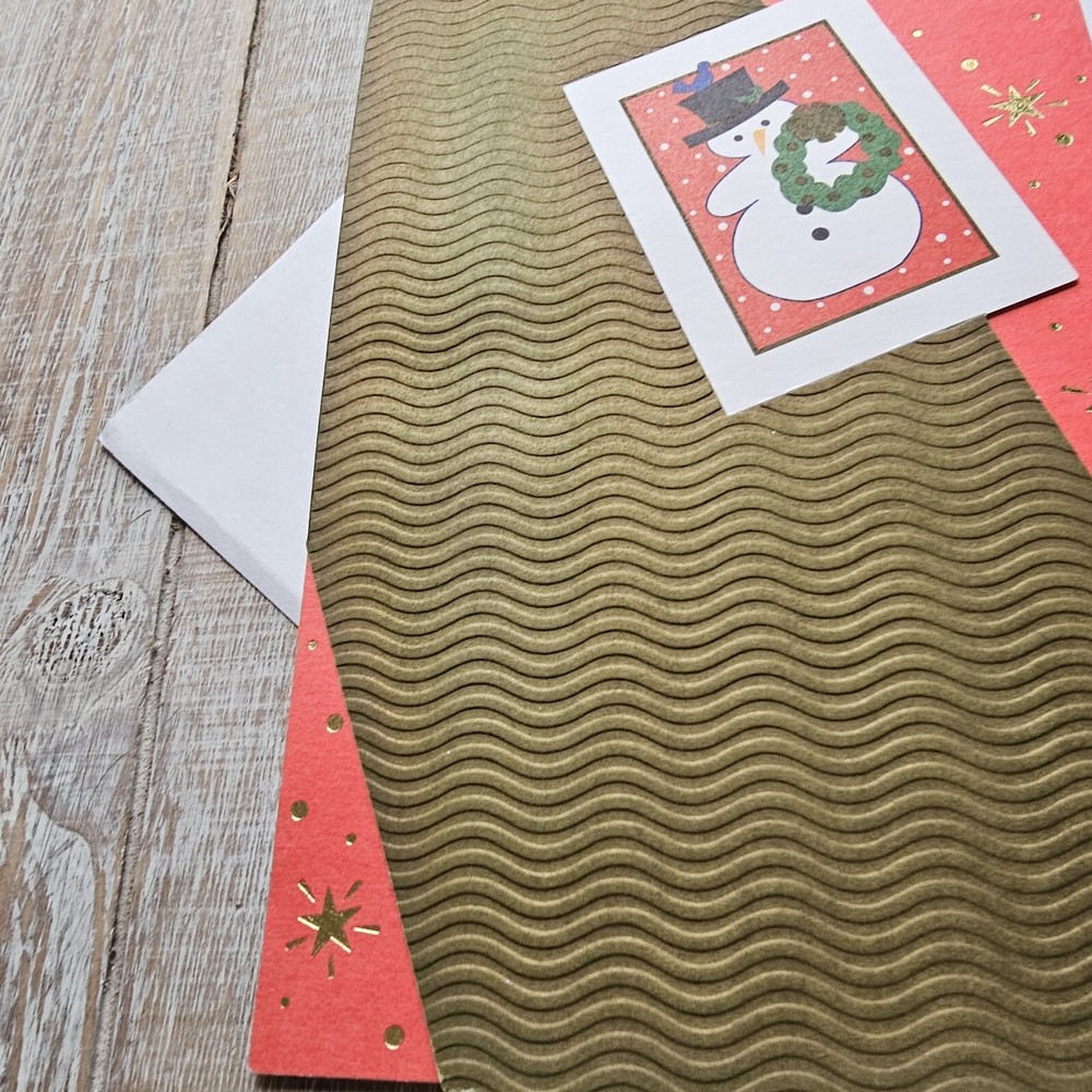 Christmas Greeting Card 6x8 Textured Brown Gold Stars Snowman Plus Mark Full Size 5.5 x 8 inch card with matching envelope Condition: new Search thousands of cards for all occasions in our eBay Store. **This items ships with limited tracking via USPS First Class.** **The standard time is 5-7 business days for delivery but it may take up to 10 days.**