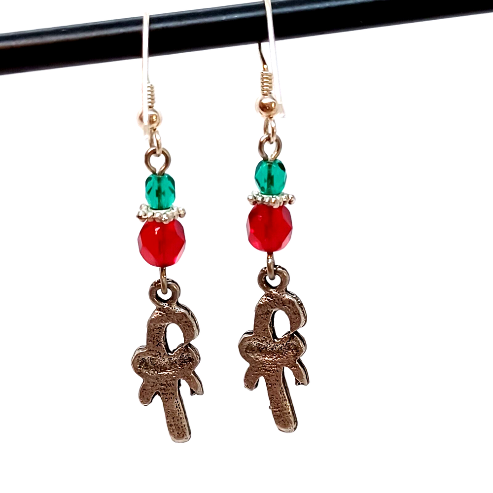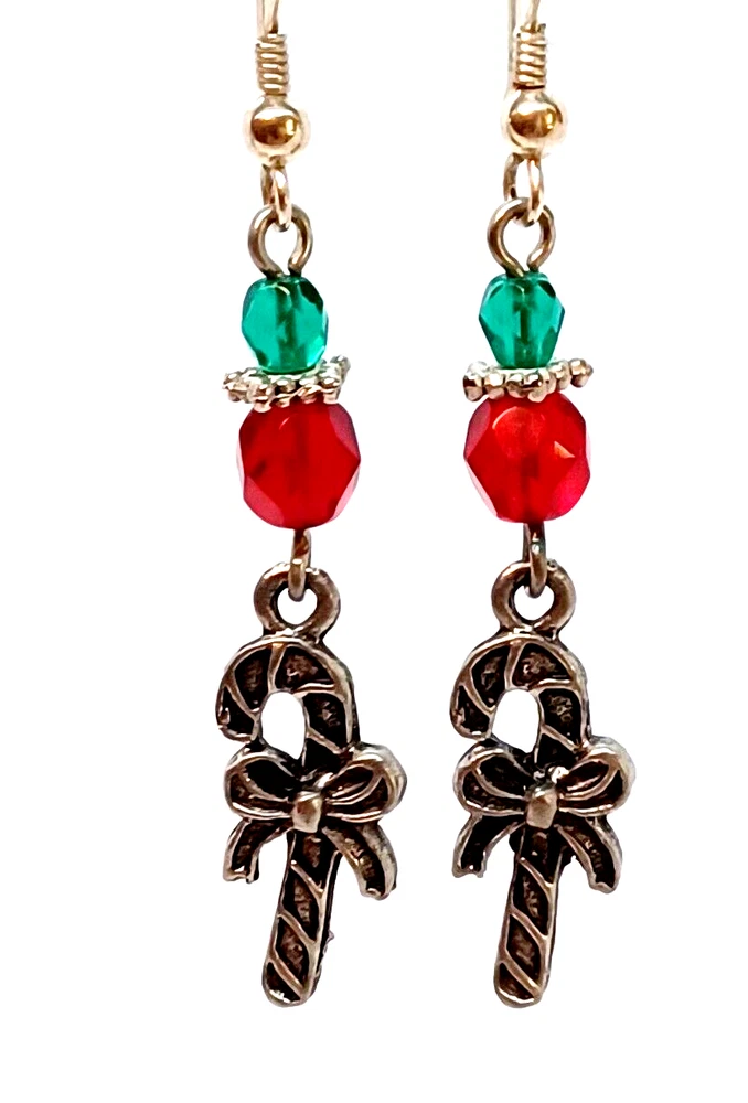 Add some festive flair to your holiday outfit with these fun and unique Candy Cane Earrings. The asymmetrical design features a silver bow and green and red acrylic beads in the shape of candy canes. The dangle/drop style and hook closure make them easy and comfortable to wear. These earrings are perfect for anyone looking to add a touch of holiday cheer to their outfit without being too over the top. They are also a great gift for a friend or loved one who loves holiday-themed jewelry.
