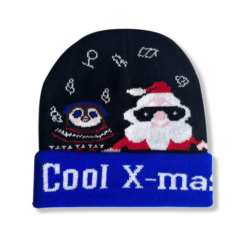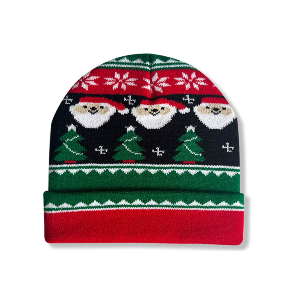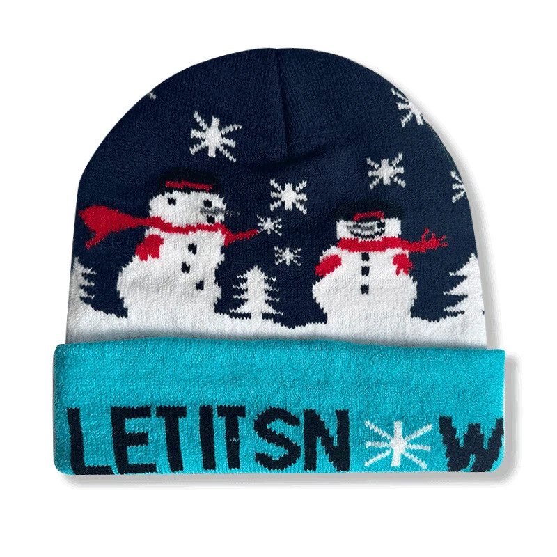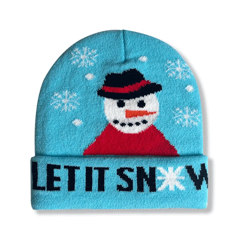 Festive Christmas Knit Beanie Winter Skull Cap with Snowman Santa Design