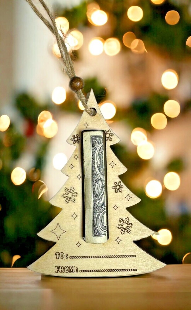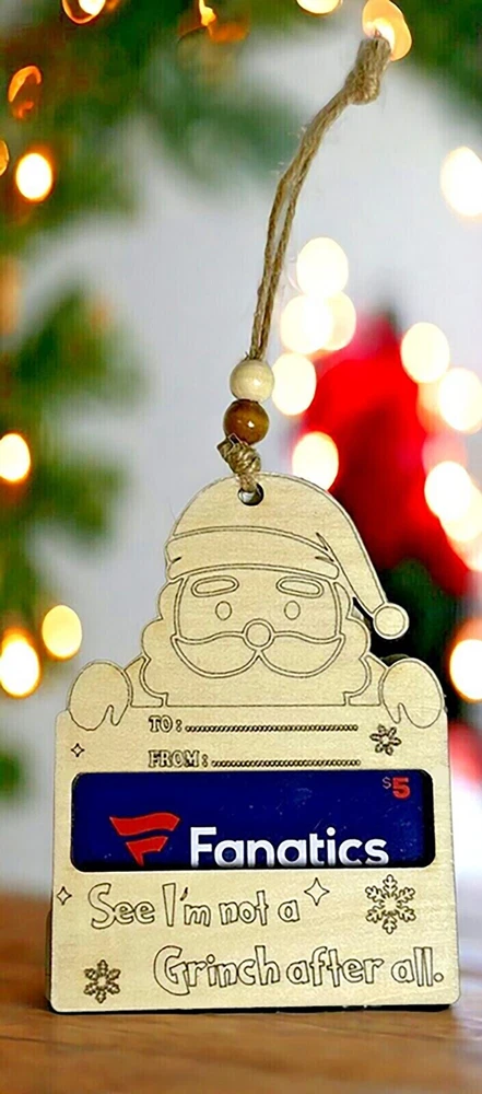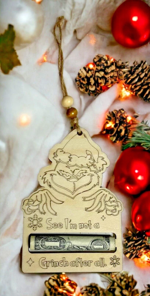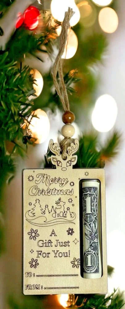The Christmas Gift Card/Cash Holder Ornament is unfinished, sanded, and ready to paint. It is laser cut from 1/8” Baltic birch plywood. We cut everything with our Laser. All pieces come separately so that you can paint and glue them together. These are great for teacher gifts, nurse gifts, office gifts, and so on! Paint them up yourself, slip a gift card or cash in, and hang them on the tree! Easy! It makes a cute ornament for the recipient for next year! ***GIFT CARD / CASH NOT INCLUDED*** ** items are unfinished** No decorating supplies are provided (i.e., paint, glue, etc.).