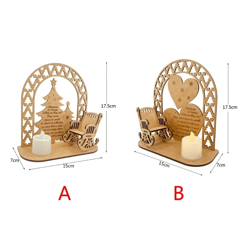Features: Brand new and high quality Material: This Christmas decoration set features board made of imported high grade pine which meets national environmental standards and has a thickness of up to 3mm. Suitable for: The product come with two button batteries for the lights at the bottom of the decoration, which can be easily turned on and off with a. The lights create a warm Decoration: This decoration set is perfect for both children and adults. It is suitable for home bedroom decoration, commercial decoration in shopping mall. Easy to assemble: The easy to assemble allows you to your creativity and unique Christmas Material: This Christmas decoration set is made of materials that are environmentally friendly and safe to use. It is choice for creating a warm and during the season. Specifications: Material: Optional styles: 15x7x7.5cm/5.90x2.75x2.95in Package size: approx.18x16.5x4.5cm/7.09x6.50x1.77in Color: As the picture shown Quantity: 1Set Package Includes: 1xChristmas Tree Ornament 1xCandle Ornament 1xSwing Chair (other accessories in the picture is not included.) note: Please allow 0-1cm error due to manual measurement. please make sure you do not mind before you bid. Due to the difference between different monitors, the picture may not reflect the actual color of the item. Thanks!