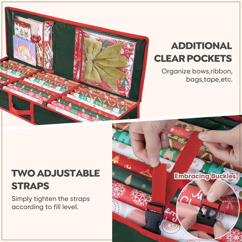 BALEINE SOFT Christmas Wrapping Paper Storage Bag, 40" Durable PE Gift Wrap Storage Bag with Flexible Partitions and Pockets for Ribbon, Accessories (Green) LuxeFusion Product Description Features [SOFT DURABLE BAG] Please NOTE! The Christmas wrapping paper organizer is made of durable and lightweight PE tarp material. There is NO structure NOR hard cardboard in it. The gift wrapping organizer storage is an alternative for Christmas boxes, Christmas ornament storage, ribbon organizer and wrapping paper storage bin. The material provides an excellent water-resistant performance to protect your investment from dust, moisture, and even small critters [PERFECTLY SIZED] The wrapping paper storage containers has NO structure but it is a storage solution to store gift wrapping supplies. All-in-one storage container that is generously sized for extra wide rolls and smartly partitioned for small gadgets. The dimension of the gift wrap organizer is about 14''x40''x6.2''. [EASY ACCESSIBLE] The flat paper organizer storage is designed to be easily hidden away underbed, above cabinets and in any shelves. Slim enough to put away anywhere, big enough to hold and protect every wrap paper rolls and accessories for the coming year after year. While in use, the extra clear vinyl pockets and flexible partitions makes it your own customizable wrapping center [OPEN TOP DESIGN] The whole top panel of the gift wrap storage can be opened for easy organizing and displaying. A tag pocket is in the top-right corner with which you can mark your collection for easier recognizing - fits up to 18 - 2.5” thick rolls, and up to 24 - 1.5” thick rolls. Note: the exact quantity of wrapping paper rolls that fit in the storage tote bag depend on the actual thickness of the rolls Product Details Package Dimensions: 8.19 x 7.72 x 2.17 inches Item Weight: 4.8 ounces Manufacturer: BALEINE Number of pieces: 1 Batteries required: No Brand: BALEINE Color: Green Material: Polyethylene (PE) Theme: Christmas Number of Items: 1 Unit Count: 1 Count Product Dimensions: 14"L x 6.2"W x 40"H Pattern: Christmas Size: 1 Count (Pack of 1) 🚚 Free Shipping All orders ship free and fast to your doorstep. 🔁 Easy Returns Satisfaction guaranteed. 30-day returns, no questions asked. 💬 24/7 Support Contact us anytime; we’re here to help, day or night. Brought to you by LuxeFusion – Quality you can trust.