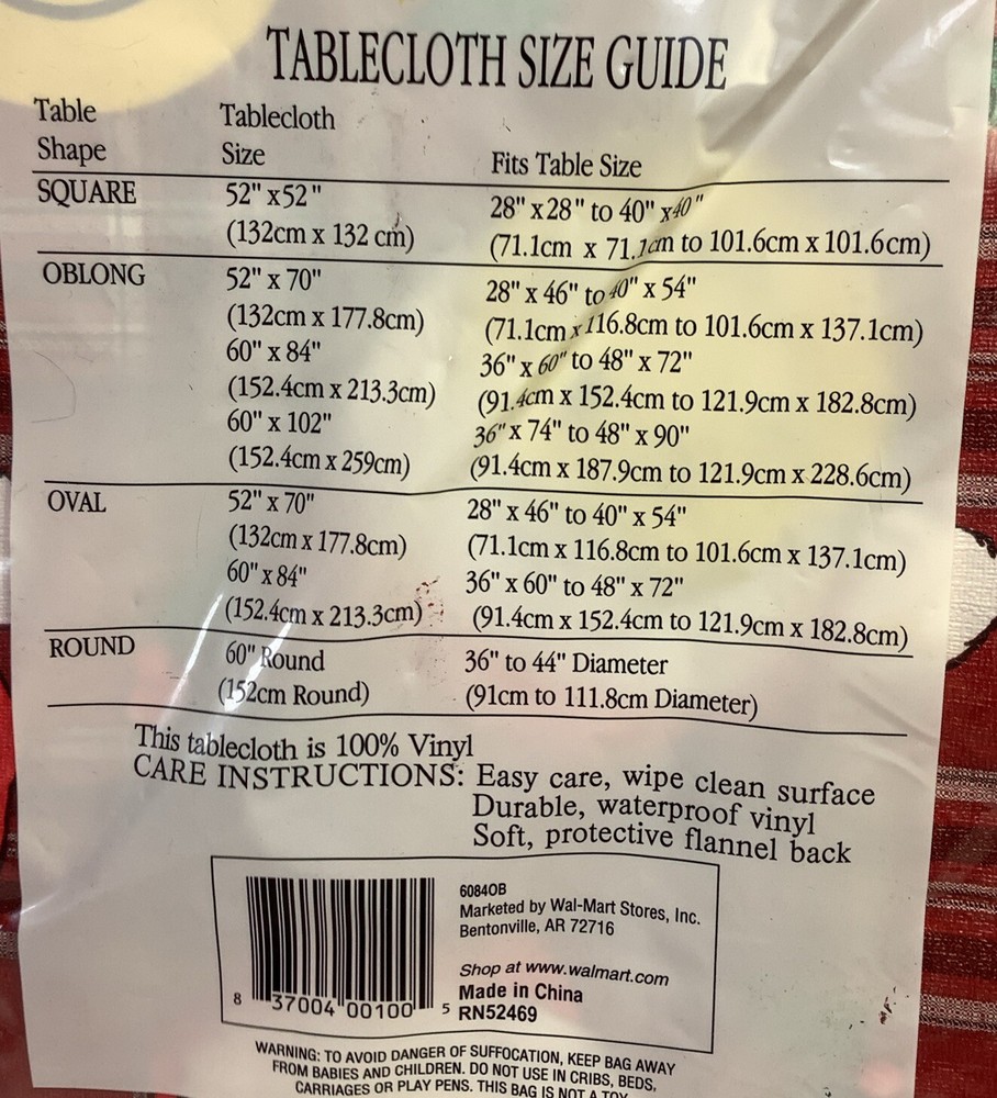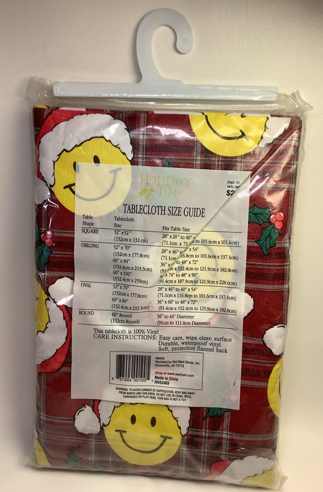 Holiday Time Christmas Smiley Face Tablecloth Vinyl Flannel Back Oblong 60"x 84”. Condition is New with tags. Shipped with USPS Ground Advantage.