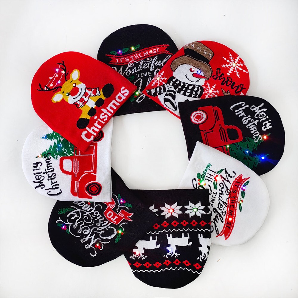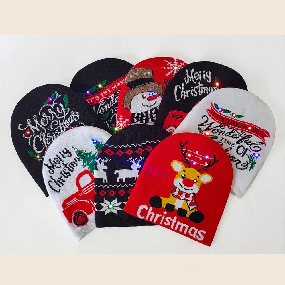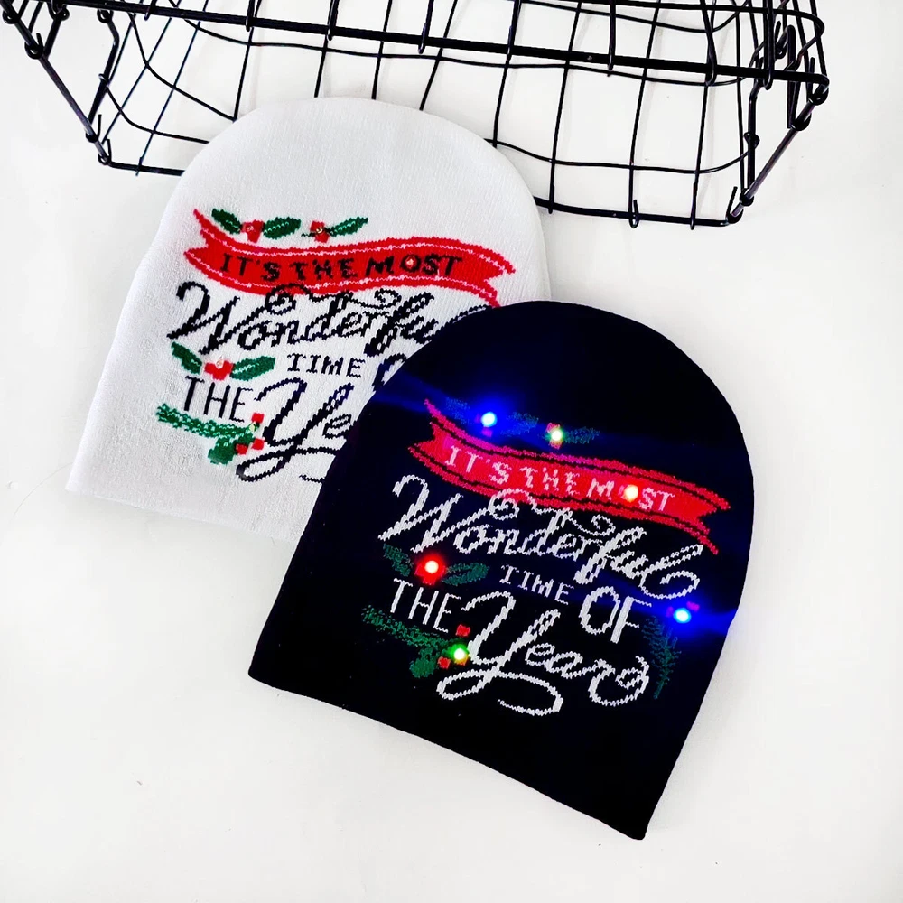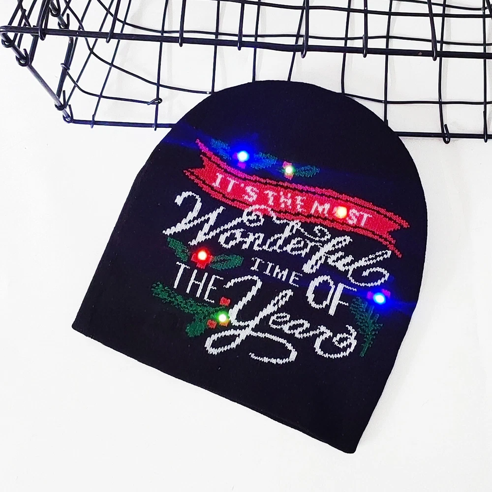 Festive Light-Up Christmas Beanie with Holiday Designs