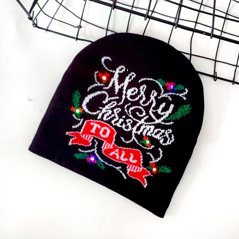MPN: Does Not Apply Theme: Christmas Gender: Adult Unisex Seller Notes: “New in Bag, with BUTTON CELL” Season: Fall,Spring,Winter Size: One Size Pattern: Christmas Graphic Print: Yes Brand: Unbranded Occasion: Casual Department: Unisex Adults Type: Beanie Material: Acrylic Country/Region of Manufacture: China Fit: Regular Style: Beanie