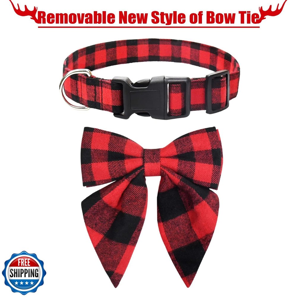 Malier Christmas Dog Collar with Bow tie, Christmas Classic Plaid Dog Collar Soft Durable Holiday Dog Collar for Small Medium Large Dogs Pet Puppy (Red and Black, Large) Features 【Christmas Dog Collar】Classic buffalo plaid dog collar with Bow tie, fashion and novelty. The dog bow tie has strap, which can be easily removed from the collar, and can be attached to other collar. Cute dog christmas collar give you and your pets new experience of walk the dog, it is the best Christmas gifts for dogs pets 【Multi Size】Small dog collar adjustable from: 11.8'' -15.7'', medium dog collar adjustable from: 14.2'' -19.7'', large dog collar adjustable from: 15.7'' -23.6''. Allow adjust the tightness of scarf freely and the collar, ideal for small to large size dogs cats. Tips: Please measure your pets neck girth before ordering 【Durable Buckle】The buckle and D-ring is made of high-quality plastic, no sharp edges, easily fasten the collar on the cats or dogs neck, and easy to wear and take off. With heavy duty D-ring can be connected to dog tag for added security 【Premium Materials】Our dog collar strap and Christmas dog bowtie are made of high quality cotton and polyster fabric, 100% exquisite handmade, durable, strong, lightweight, comfortable and damage the skin of your pets 【Multi Occasion】Ideal for Christmas party, everyday wear, Birthday party costume, festive wearing and etc. An attractive bandanda and collar will automatically give the pet a brighter a touch of glamor Shipping Free & Fast Shipping: We offer free shipping to most of the USA with a normal delivery time of 3-7 days. However, due to the current situation, additional delivery time (up to 3 weeks) may be required for some items. Alternative Carriers: We may use alternative carriers (e.g., USPS, FedEx, UPS) to ensure your package arrives safely and on time. Due to the use of multiple carriers, we are unable to provide a tracking number automatically. Handling Time: Orders are processed and shipped within 1-2 business days of receiving cleared payment. Shipping Restrictions: Shipping to Alaska, Hawaii, Puerto Rico, Guam, and other US territories may incur shipping charges or delivery restrictions. Please contact us before ordering, or your order can be refunded/cancelled. State Restrictions: Certain items may not be shipped to California due to state regulations. Contact for Tracking Updates: If you require tracking updates or have any concerns about the delivery of your order, please feel free to contact us, and we will be happy to assist you. Return Policy 30-Day Hassle-Free Returns: If you are not completely satisfied with your purchase, you can return the item for free within 30 days of receiving it for a full refund or exchange. Easy Return Process: Contact us, and we will provide you with a prepaid return shipping label and detailed instructions. No Restocking Fee: There are no restocking fees for returns. However, the buyer is responsible for return shipping costs if the return is not due to a seller"s error. Refund Processing: Refunds will be processed within 1 business day of receiving the returned item in its original condition. Feedback Your feedback is extremely important to us. We strive to provide the best products and customer service possible. If you are satisfied with your purchase, please take a moment to leave us a positive review. If you have any concerns or issues with your order, please contact us before leaving negative feedback. We are committed to resolving any problems and ensuring your satisfaction. Contact Us If you have any questions or concerns, please feel free to reach out to our customer support team. You can contact us through the eBay messaging system. We are available Monday to Friday, 9:00 am to 5:00 pm EST, and we will do our best to respond to your inquiry within 24 hours. Thank you for supporting our small family business!