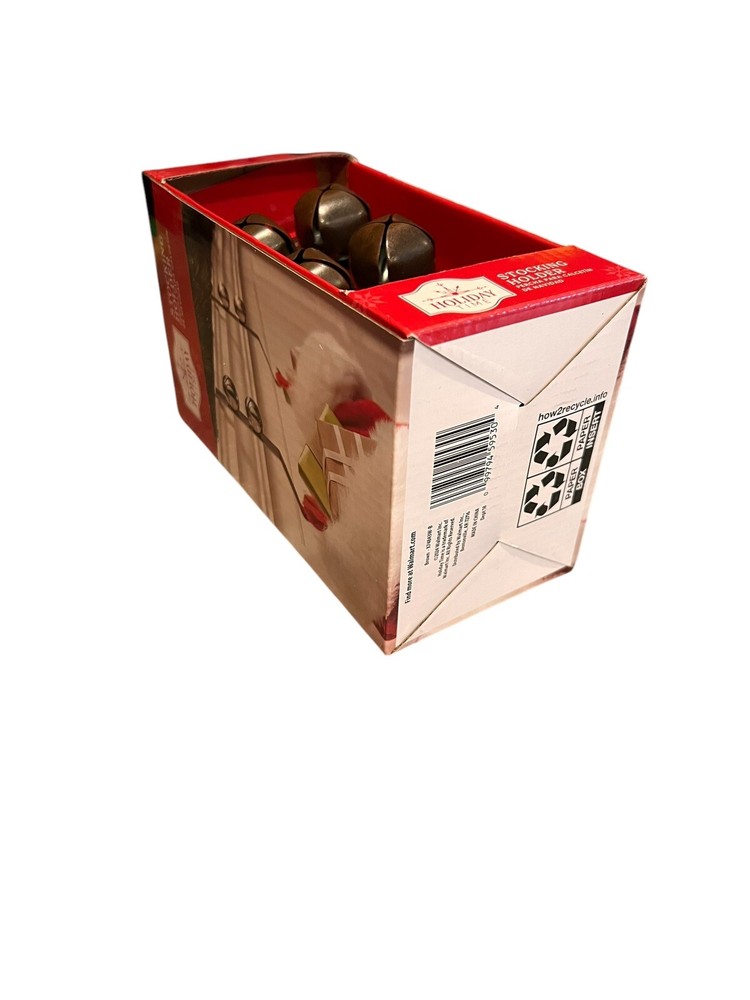 Get into the Christmas spirit with this set of four metal sleigh bell holders. These jingle bells are perfect for hanging your stocking, wreaths, or garland to add a festive touch to your holiday decor whether it is on a mantle or a shelf. The set includes four hangers with two sleigh bells. These stocking hangers are ideal for adults and children alike, and are sure to bring a touch of holiday cheer to your home. They are made of high-quality metal. Add these jingle bells to your collection of Christmas decorations and make your holiday decor stand out this season. See photos for exact description and details on condition of box. Please feel free to ask any questions. 😀🎄
