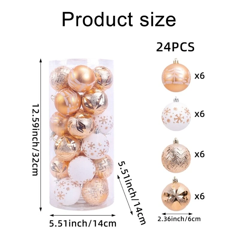 Features: Immersing yourself in the festival with our exquisitely hand painted Christmas Ornament, a essential to light up your holiday. Crafted from sturdy plastic, these Christmas sphere boast easy to hanging features and is designed for longevities, ensuring they can graces your celebration year after year. Perfect for Christmas enthusiasts of all ages, our ornament is a delicate addition to any homes, office, or storefronts look to add a touch of yuletide charm. Whether adorning your Christmas tree, embellishing your window, or accenting your porches and hallways, these decorations create a warm ambiances that captures the essences of Christmas. Elevates your holiday decors with these Christmas baubles, which seamlessly blend traditional craftsmanship with modern aesthetic, making a great option for creating festival moment. Specifications: Component:Plastic Color:Pink/ /Yellow/Gold/Blue/ Single Size:Approx.6cm/2.36inches Package Includes: 24Pcs/Set Hand Painted Christmas Sphere Ornament (4 pattern, each with 6 pieces) note: Please allow 1-2cm error due to manual measurement. Please make sure you do not mind before you bid. Due to the difference between different monitors, the picture may not reflect the actual color of the item. Thanks!