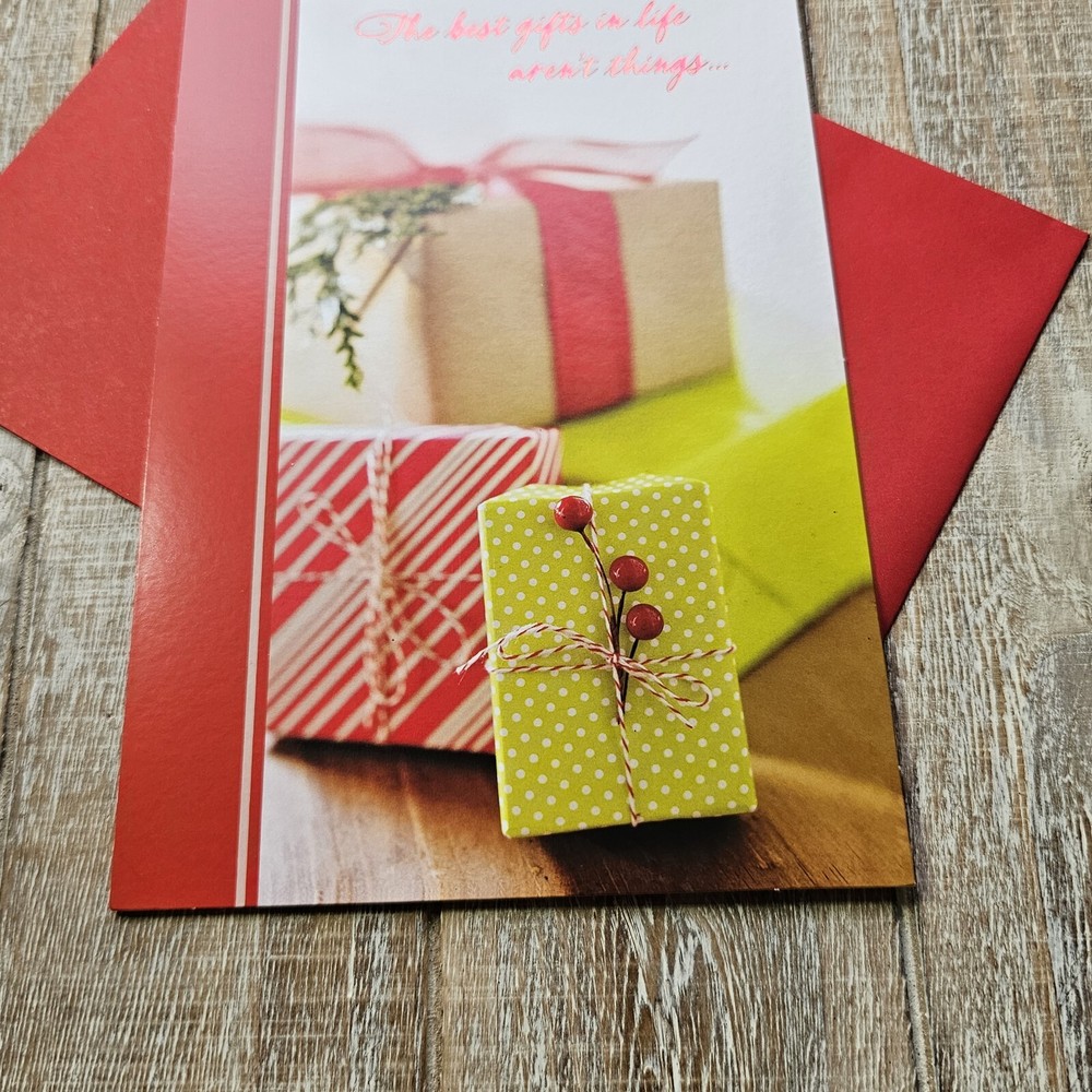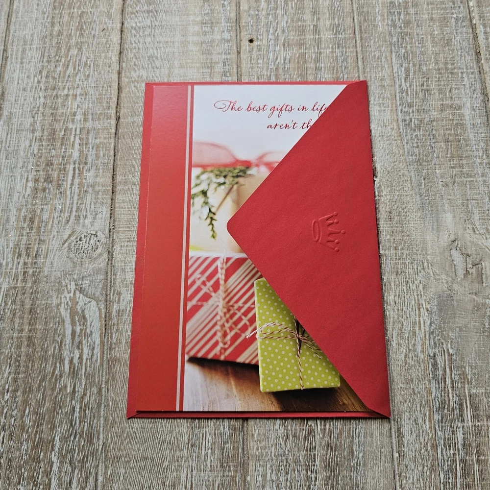 Hallmark Christmas Greeting Card Gifts Present Red Yellow Full Size 5.5 x 8 inch card with matching envelope Condition: new Search thousands of cards for all occasions in our eBay Store. **This items ships with limited tracking via USPS First Class.** **The standard time is 5-7 business days for delivery but it may take up to 10 days.**