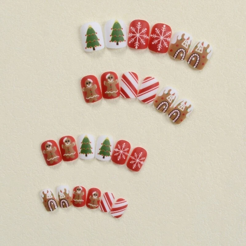 Features: Short square false nails with gingerbreads man designs is lovely, which will add elegant feeling to your Christmas press on nails are suitable for enthusiasts, beauty salons, and anyone who loves to experiment with their look. Candy house full cover on nails is suitable for enthusiasts who want professional results. These false nails are suitable for everyday wear. Funny to decorate nails with your family and friend when family gathering and party, enjoy your special look and the good for time. White snowflake false nails is suitable for various occasions like parties, weddings, and daily life, these false nails will add a touch of confidence and charm to your overall look. Specifications: Component: ABS Package Includes: 1 Box False Nails note: Please allow 1-3cm errors due to manual measurement. Due to the difference betweeen different monitors,the picture may not reflect the actual color of the item.