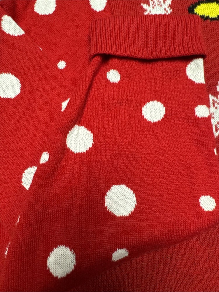 Get into the holiday spirit with this festive PEANUTS Snoopy Christmas sweater! The red sweater features a graphic print of Snoopy's doghouse with lights and snowflakes, perfect for any Christmas occasion. The tight-knit polyester, cotton, and cotton blend fabric is stretchy and breathable, making it comfortable to wear in any season. With a classic fit and long sleeves, this sweater is suitable for unisex adults in size XL. The round neckline adds to the pullover style of the sweater, making it easy to wear. The sweater is perfect for travel, parties, or casual wear. Add this colorful and holiday-themed sweater to your wardrobe today!
