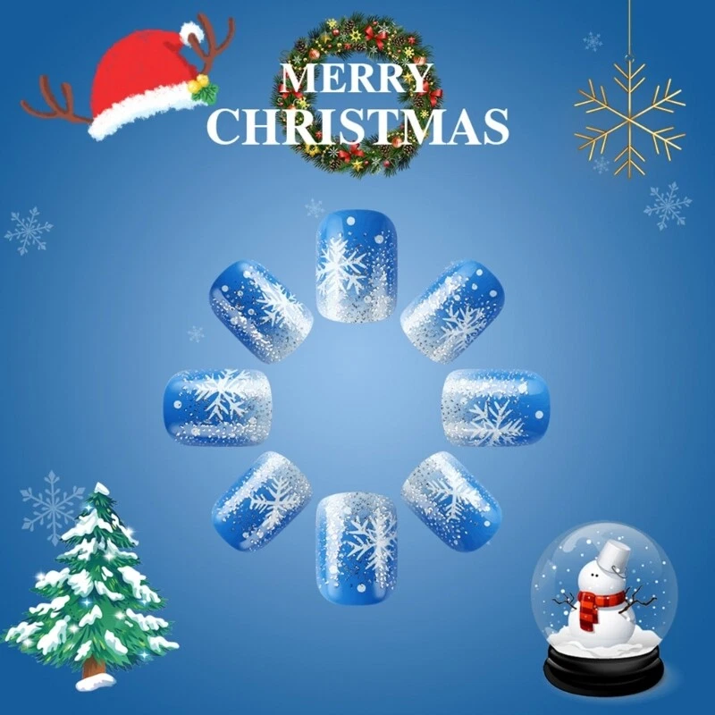Features: Short square false nails is beautiful, which will add elegant feeling to your Christmas press on nails are suitable for enthusiasts, beauty salons, and anyone who loves to experiment with their look. Glittering blue full cover on nails is suitable for enthusiasts who want professional results. These false nails are suitable for everyday wear. Funny to decorate nails with your family and friend when family gathering and party, enjoy your special look and the good for time. White snowflake false nails is suitable for various occasions like parties, weddings, and daily life, these christmas false nails will add a touch of confidence and charm to your overall look. Specifications: Component: ABS Package Includes: 1 Set False Nails note: Please allow 1-3cm errors due to manual measurement. Due to the difference betweeen different monitors,the picture may not reflect the actual color of the item.